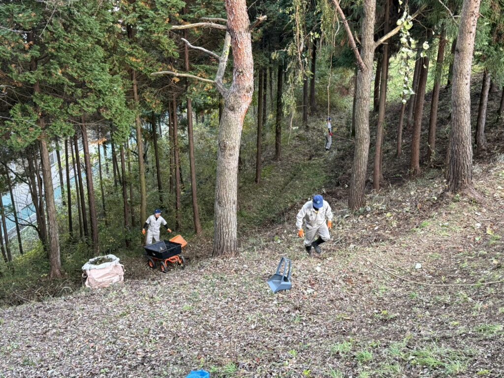 枯葉の捨て場を確保したり 集めて上まで引き上げたり