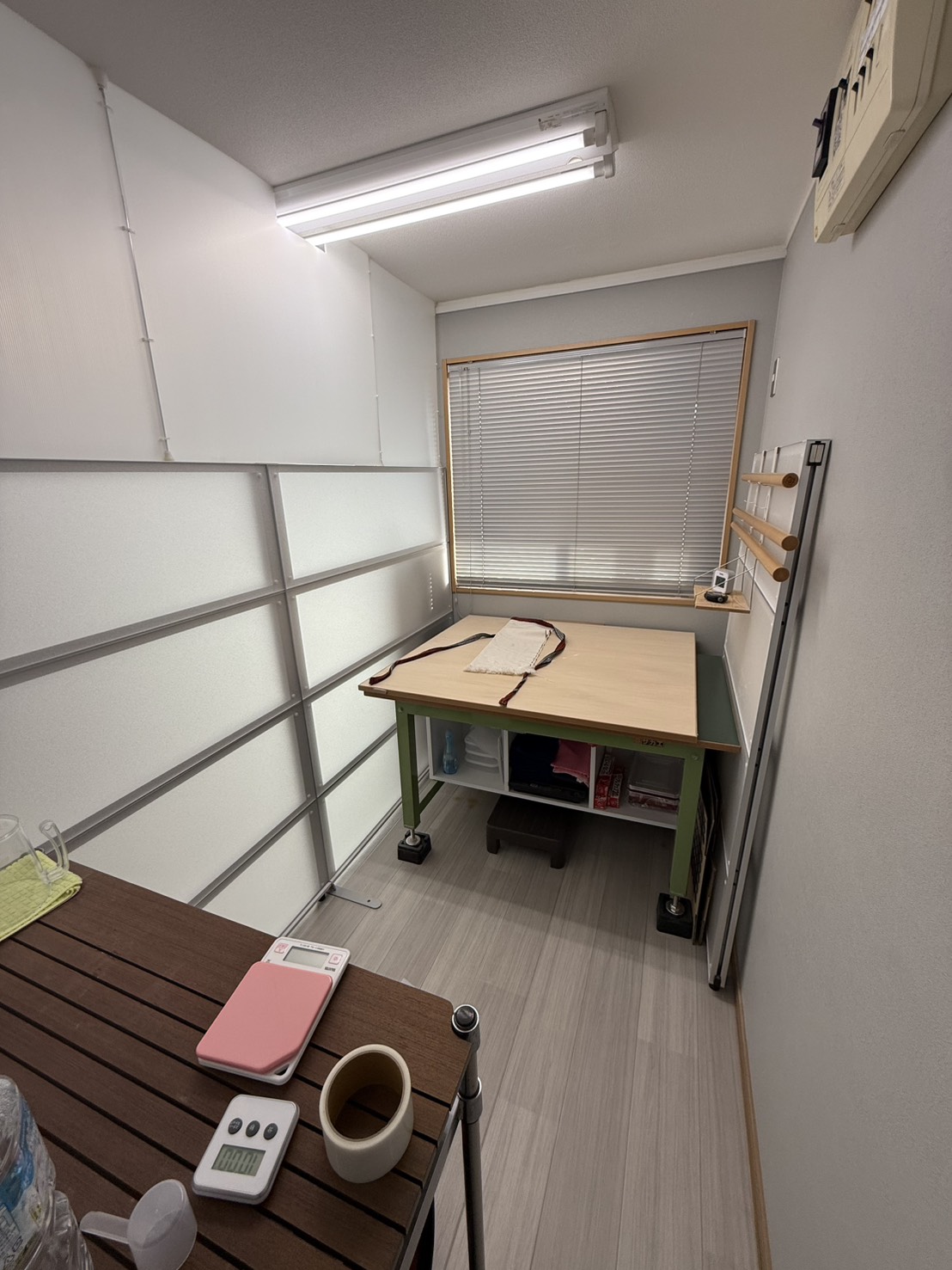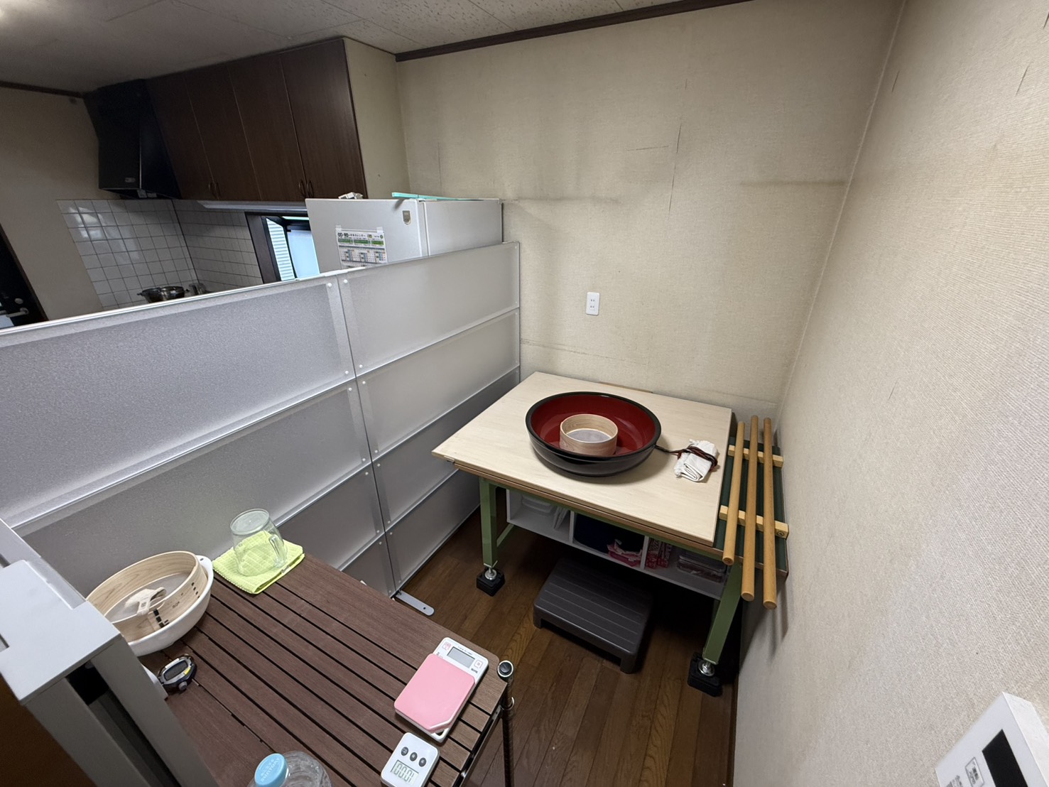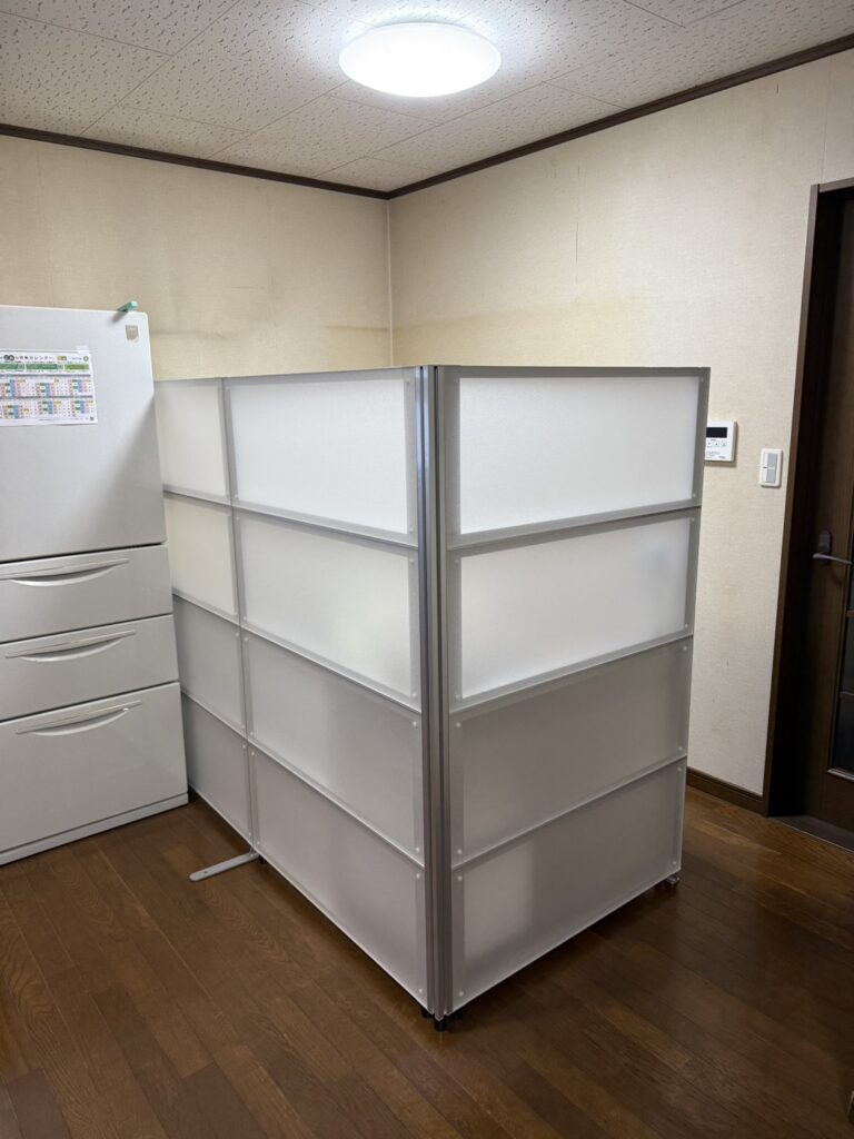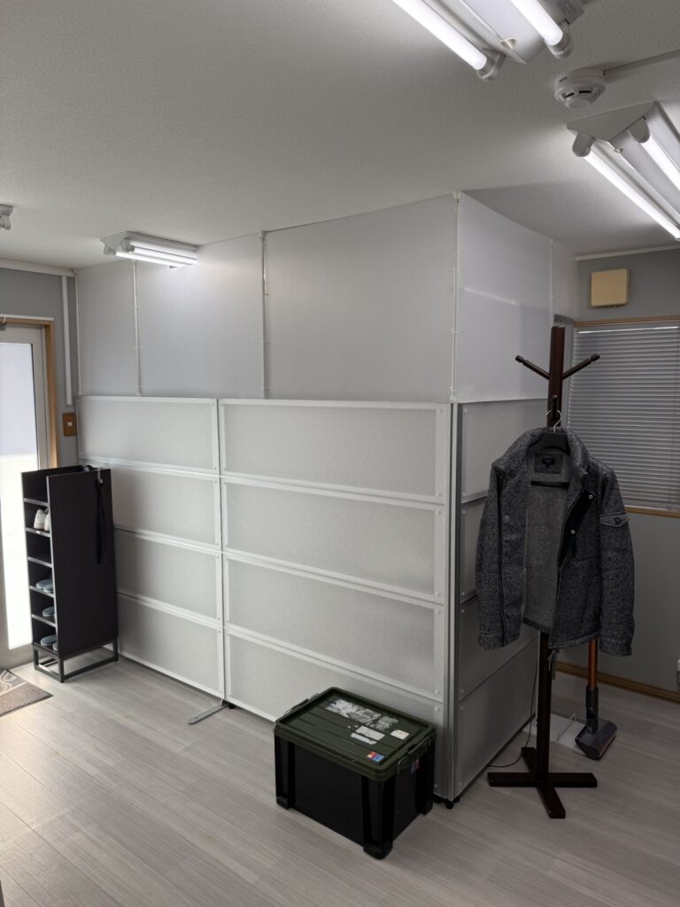 パーテーションを組立し 蕎麦打ち道具を整理しました