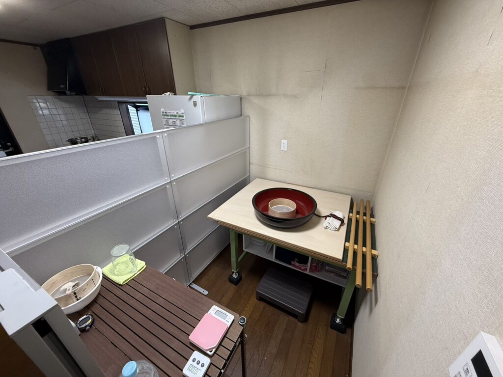現在は 事務所内をパーテーションで区切り 蕎麦を打っていましたが蕎麦粉の飛散が酷く 掃除も大変でした