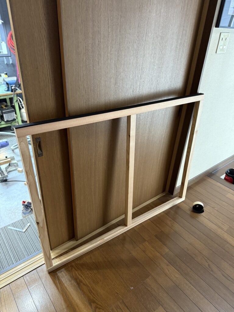 以前 事務所では突っ張り棒と プラダンだけで囲っていましたが 強度不足で隙間から粉が漏れていたので 今回は木枠でびっちり作成しました