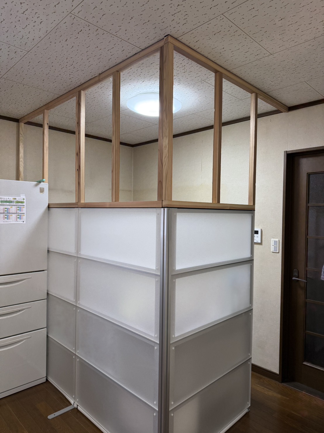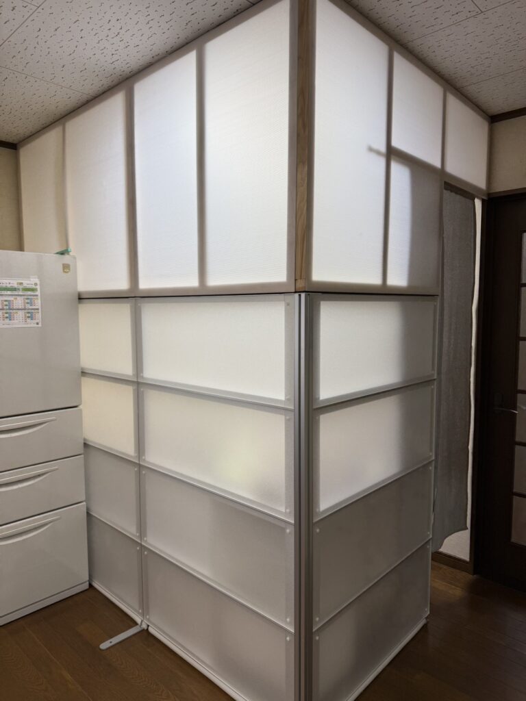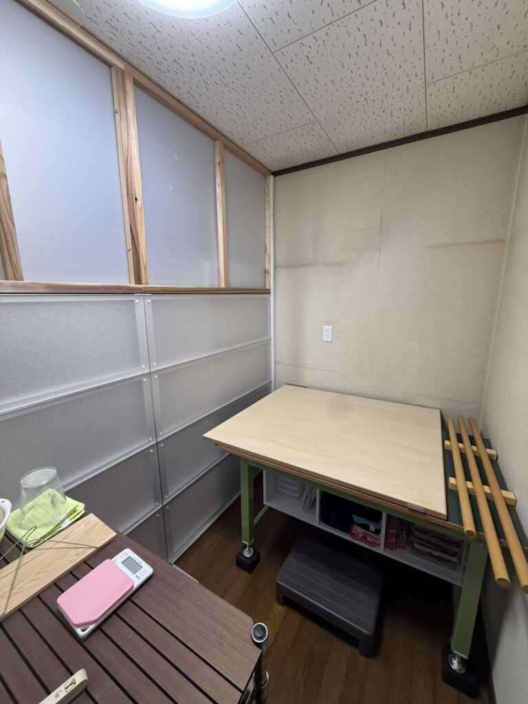 蕎麦打ち部屋 引っ越しに伴い パーテーション上の仕切りを作って行きます
