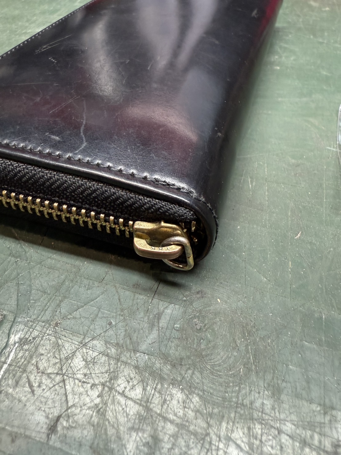 財布。 先日 長年使っている財布のファスナーが壊れました 小さな革製の引手でしたが 無くなるとえらい不便です 財布を買ったところに修理に出そうかとも考えたのですが あったらいいなは 大体Amazonに売っていると思い検索すると やはり売っていました 数日で届いたので 早速取付 ラジペンでちょちょっと作業し あっという間に修理完成 送料も込みで 1,000円未満で直りました 本当に最近は便利になりました こういうちょっとした部品も手に入るのですからね もうしばらく 大事に使いたいと思います