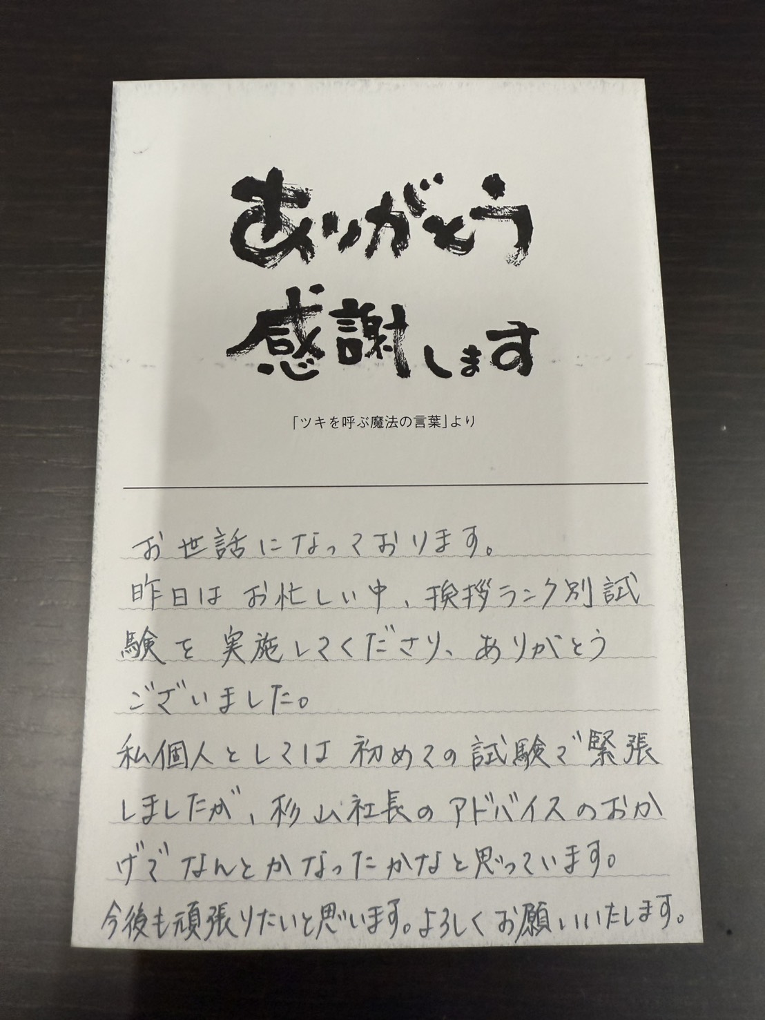 2日間の試験が終わり 帰り際に一人のスタッフさんから一枚のはがきを頂きました