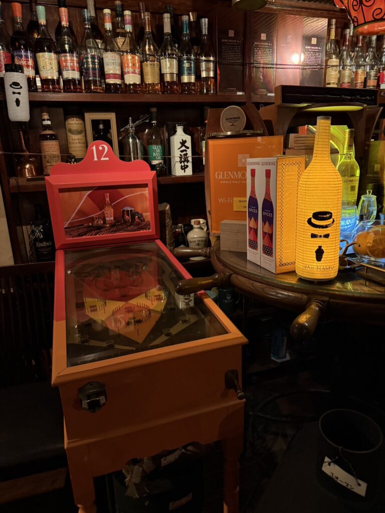 マスターに尋ねると GLENMORANGIEのイベントで使われた 世界に1台しかないピンボール機だそうです