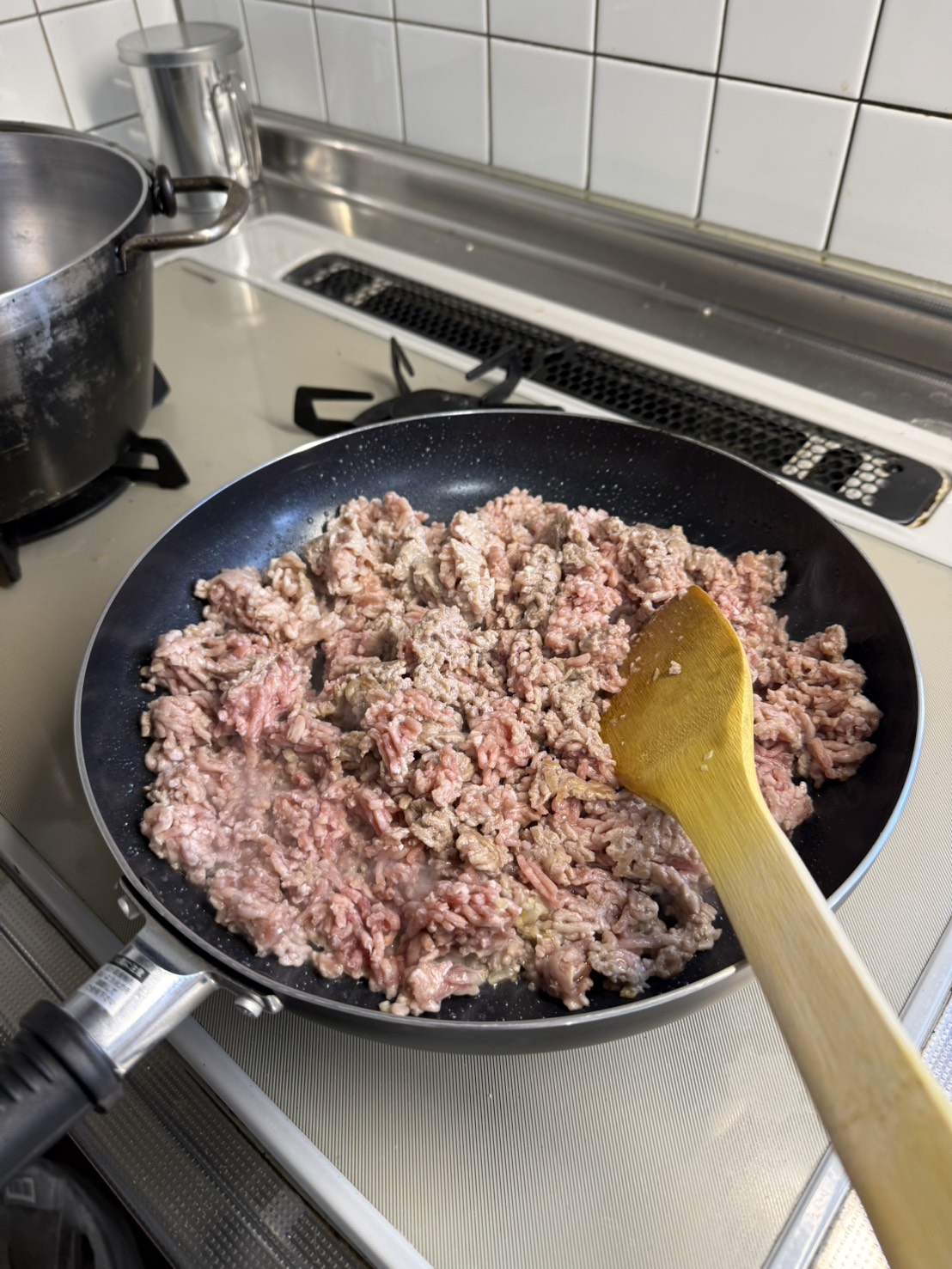 子供はお肉が好きなので 合挽のひき肉は多めです