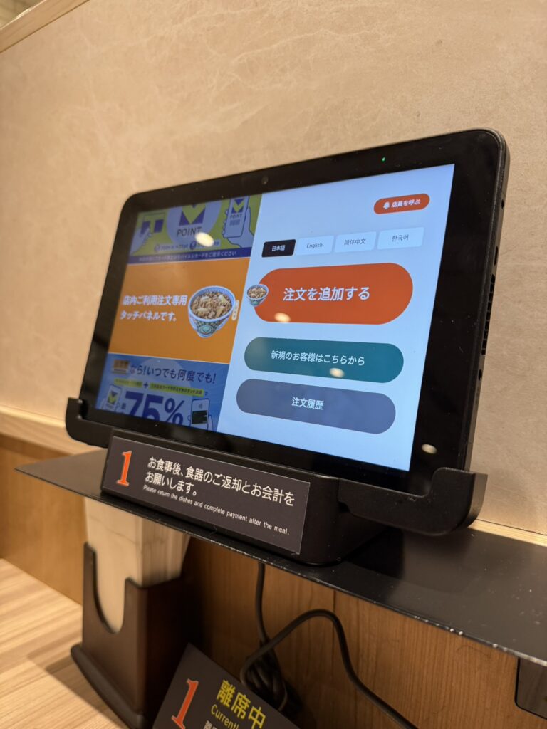 私の知らない以間に 吉牛がタッチパネルになっていた