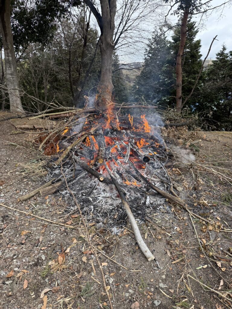 長い木は ノコギリで切りながら 燃えろよ燃えろーよ どんどん燃えろー♪とばかりに 枝葉を投入していきます