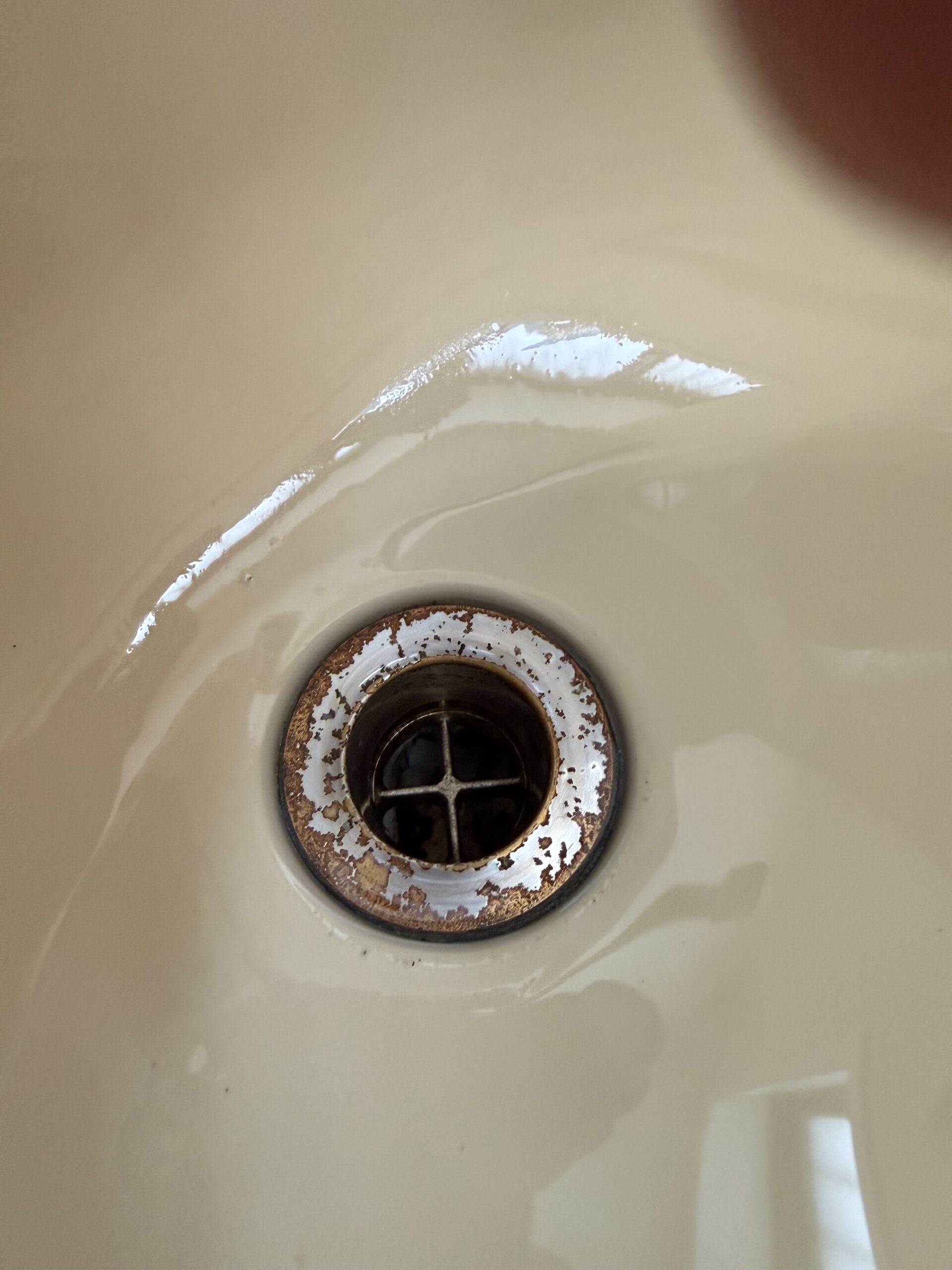老朽化で排水口の金具が錆びていたので ペーパーで滑らかにするも 効果なし