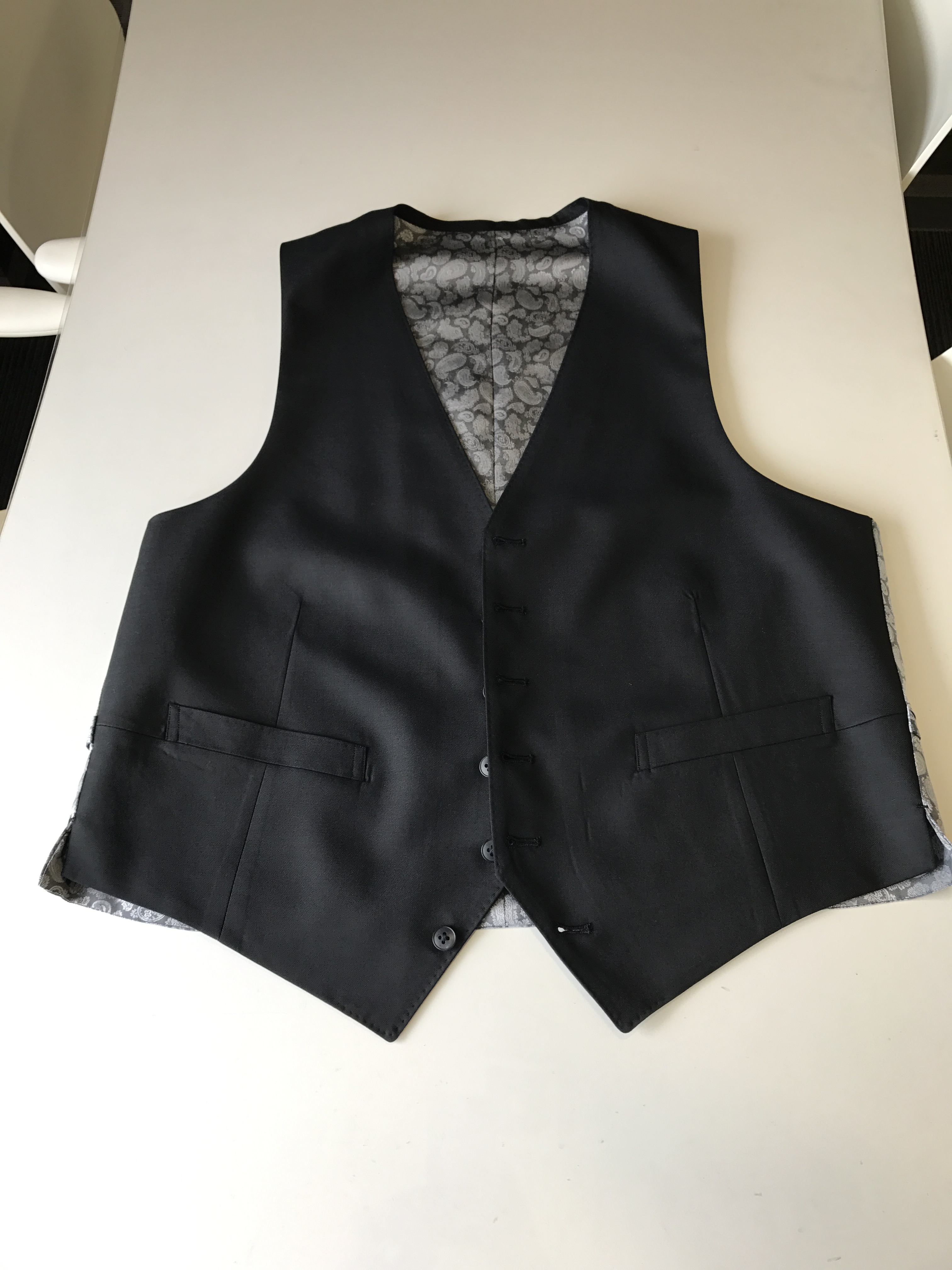 新スーツ 春なので スーツ新調しました 出張やセミナー用におとなしめのデザインです(笑) 今回は黒に近い生地で 艶のあるものにしました 最近は3ピースで作る事が多いです 裏地はシルバー系のペイズリー柄です ネクタイも新調したくなりますねー