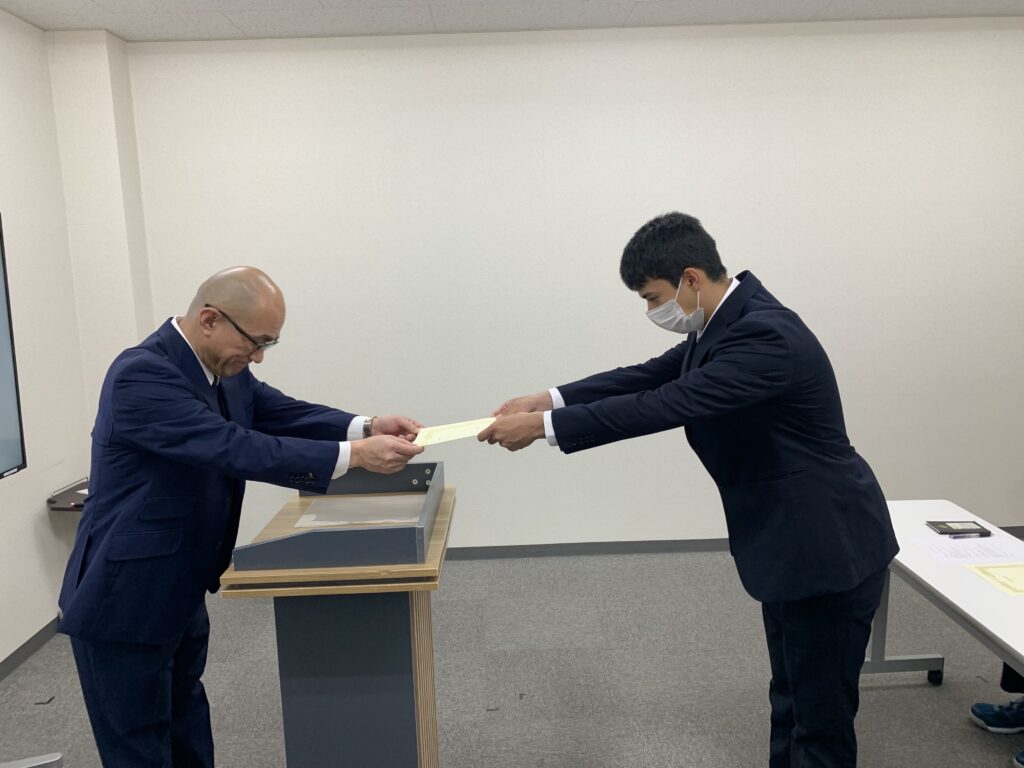 その後行われた辞令交付では 一人ひとりに直接辞令を手渡しましたが 彼らが語ってくれた力強い抱負には若者らしいエネルギーが溢れており私自身も身の引き締まる思いがいたしました