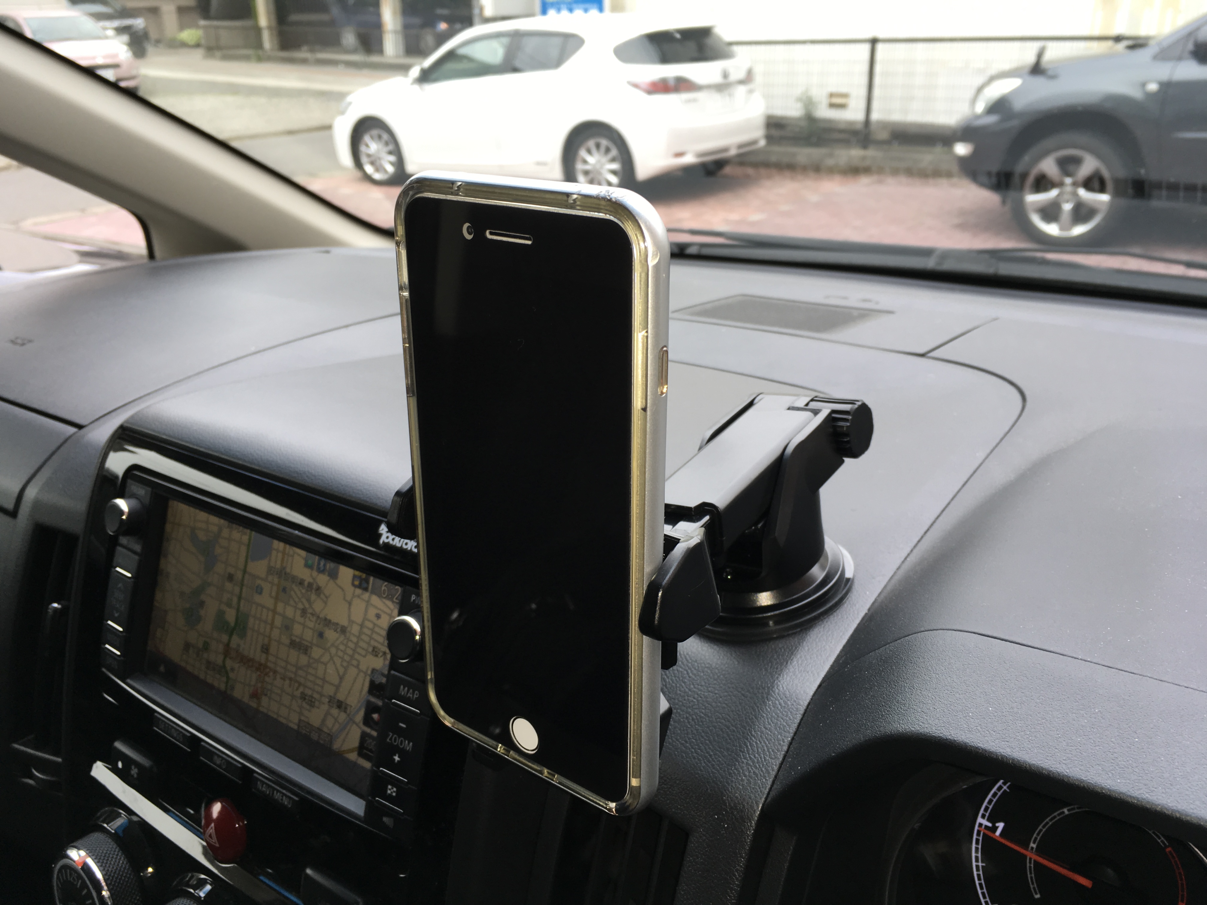 便利グッツ あまり車にはゴチャゴチャ付けないのですが スマホだけは充電中置場に困るので なにかいいものはないかと探していました ○ ネットでEasy One Touch2というのを見つけてさっそくポチ! スマホを押し付けるだけで ホールド 片手で摘めば リリースと使い勝手はなかなか良いです 角度や長さも変えられて 便利 それに最近の吸盤はどこでもくっつくんですね(感心) 他のスマホホルダーは使った事無いですが 満足満足
