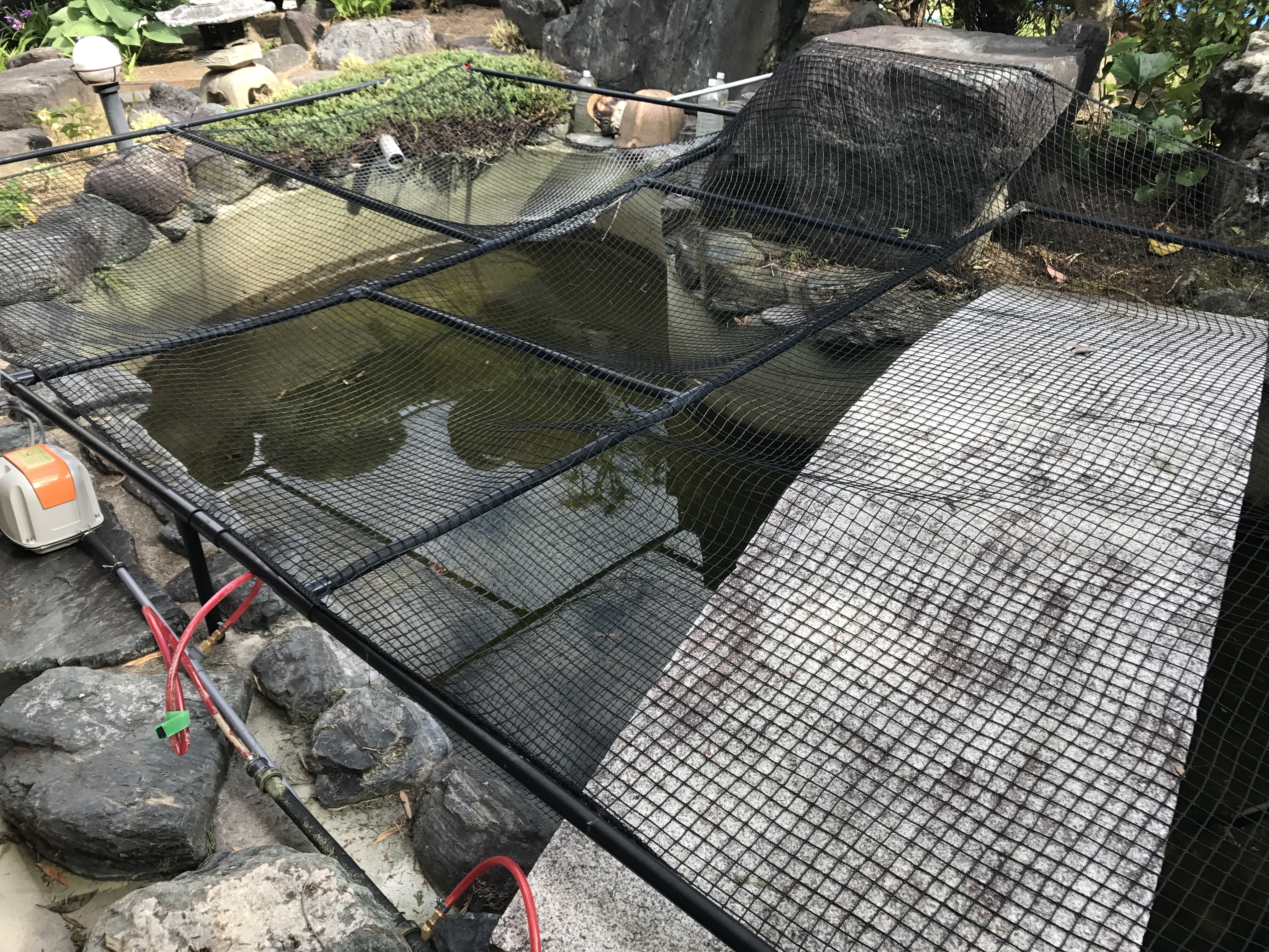 昼休み D川社長にも手伝ってもらい 池の金魚の捕獲作業