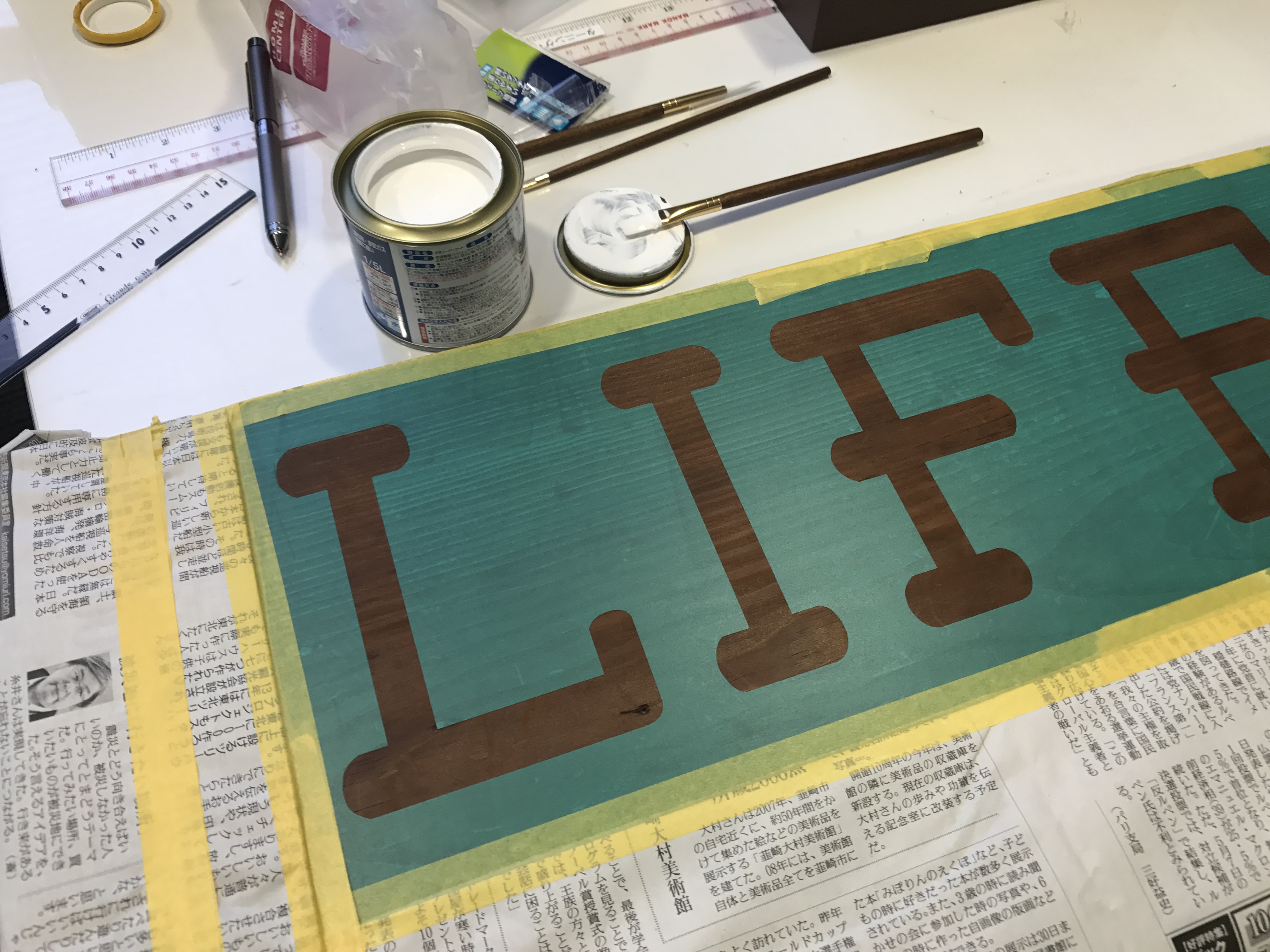 ドキドキしながら マスキングをはがします