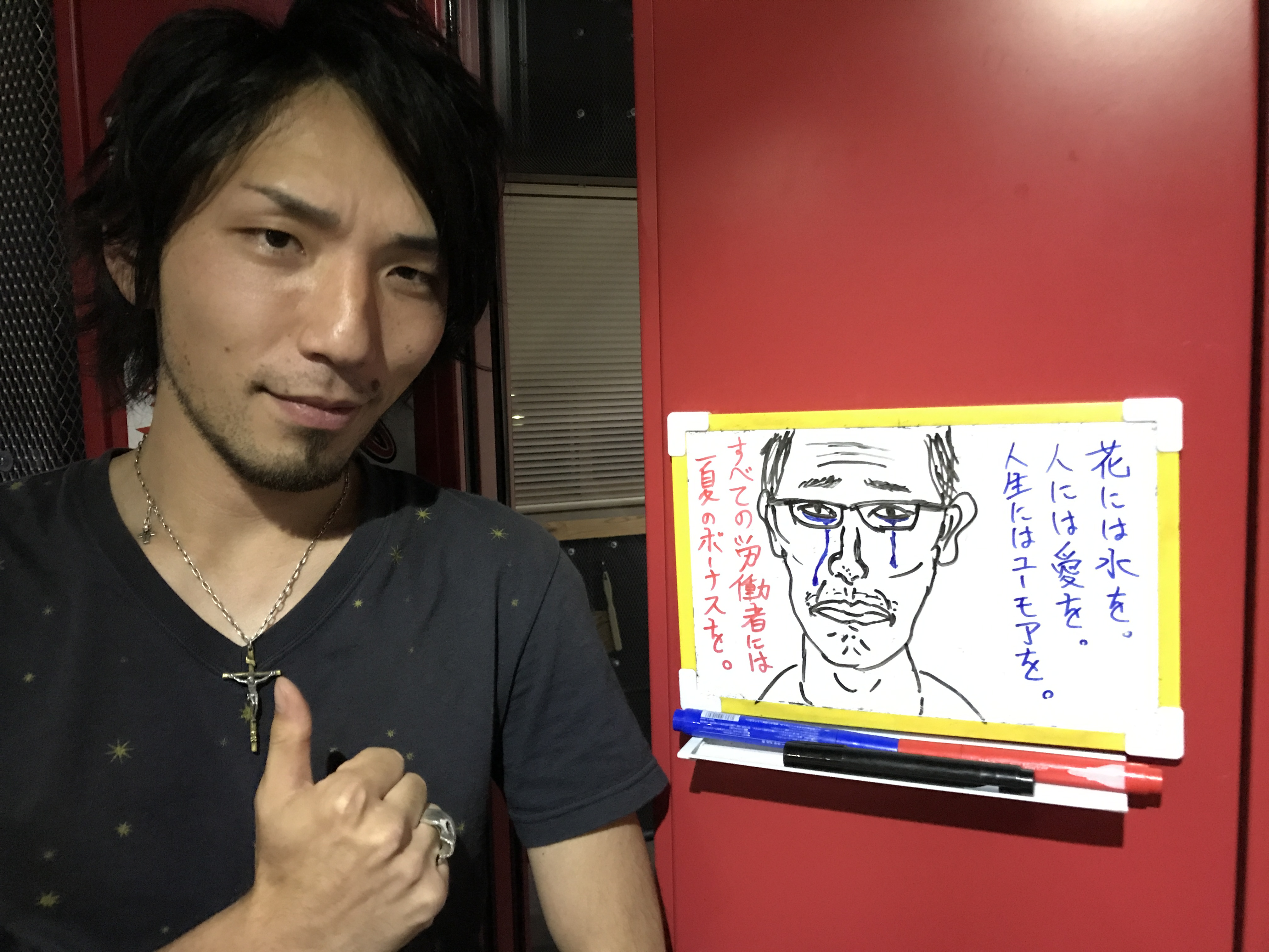スタジオにはホワイトボードがあり 普段は生放送中にADさんが 中のパーソナリティーに伝言を伝える為に使用しています