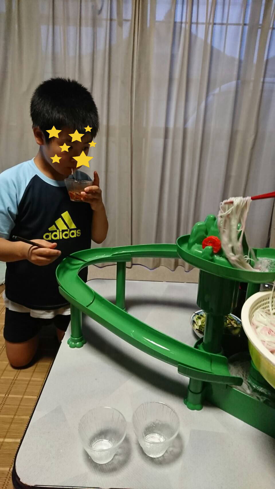 大好評 先日のボーリング大会の景品 流しソーメンコースター(笑) ゲットしたのは 白岩工場 事務のO田さん さっそくご本人から LINEが(以下LINEの分) 社長 ボウリング大会の画像はあまりにも本気だったので撮ってなかったんです。 なので現在の我が家の風景送りますねえ 長男がバンバン流し過ぎてそうめんが溢れてます との事 喜んでいただいてよかったです また皆で盛り上がりましょう!