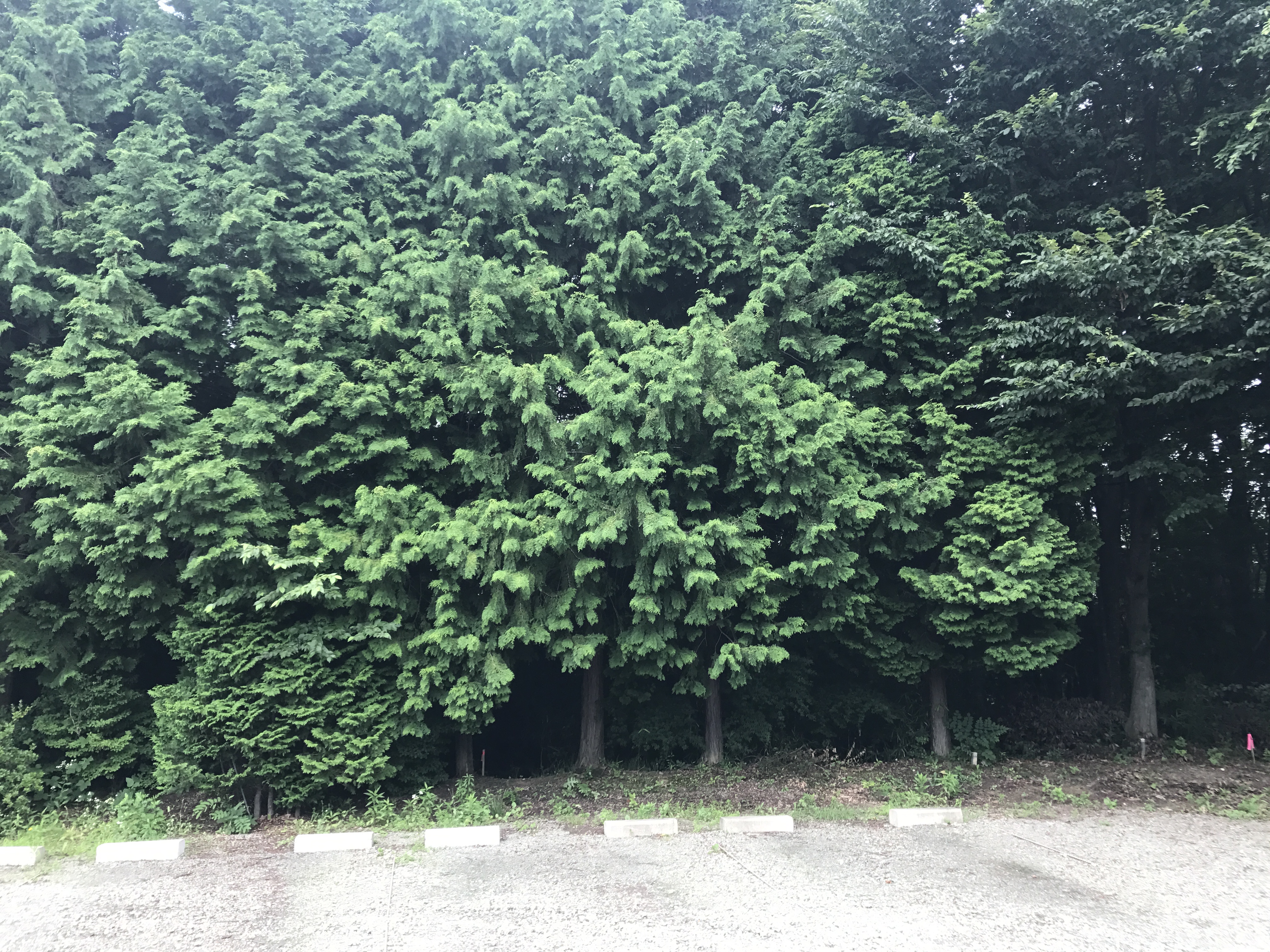本社工場の駐車場の裏は森になっています