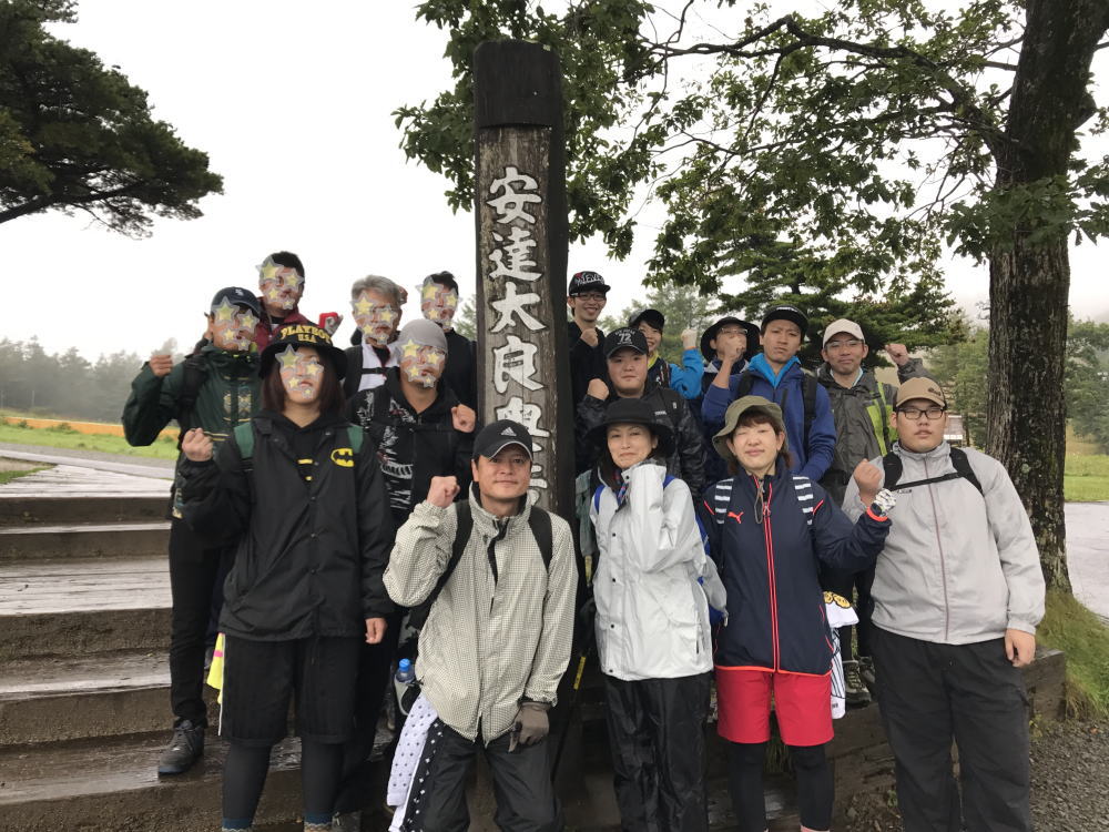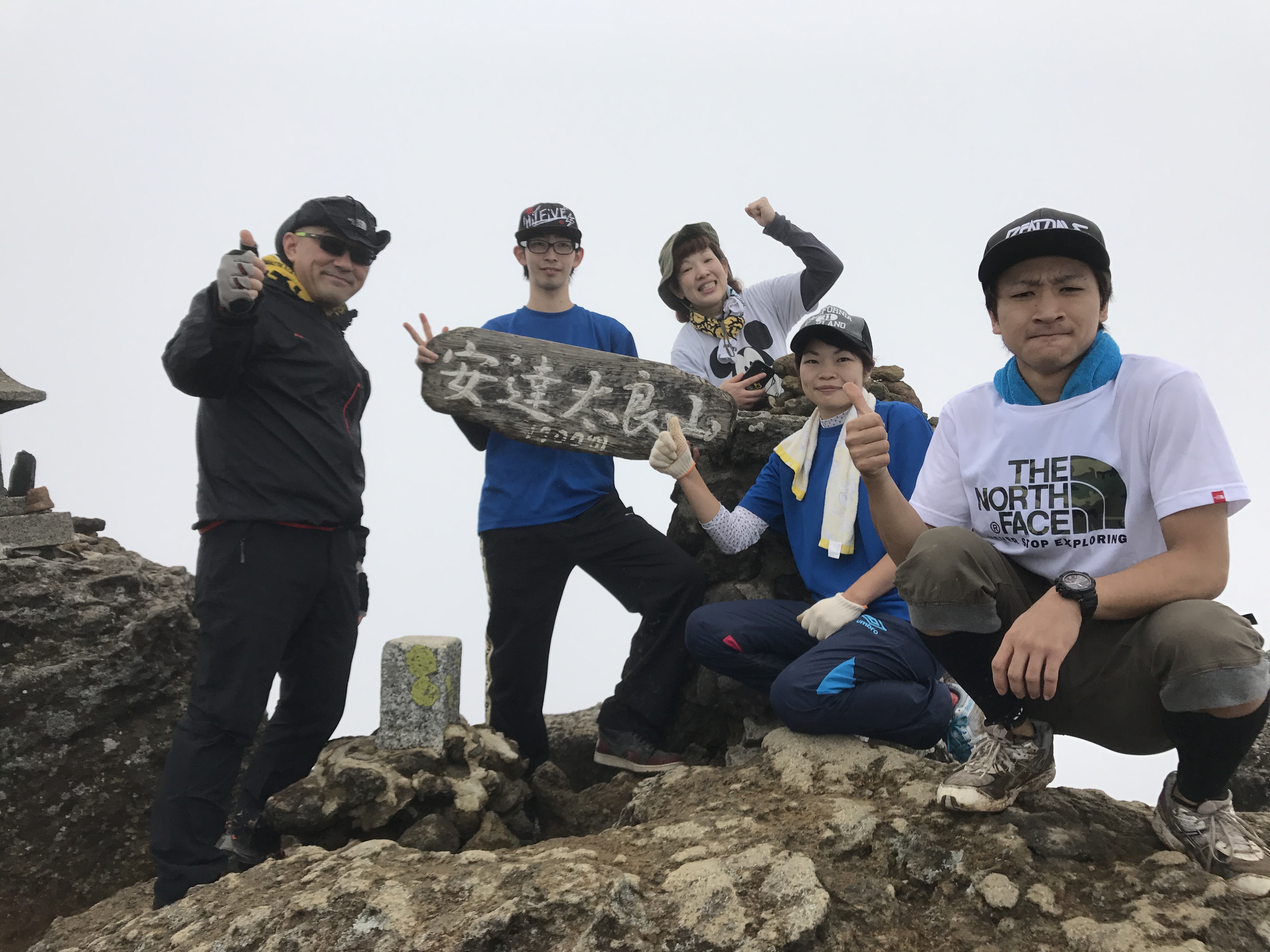 途中 登山道は雨水が滝のように流れていてゆく手を阻みましたが 無事全員登頂!