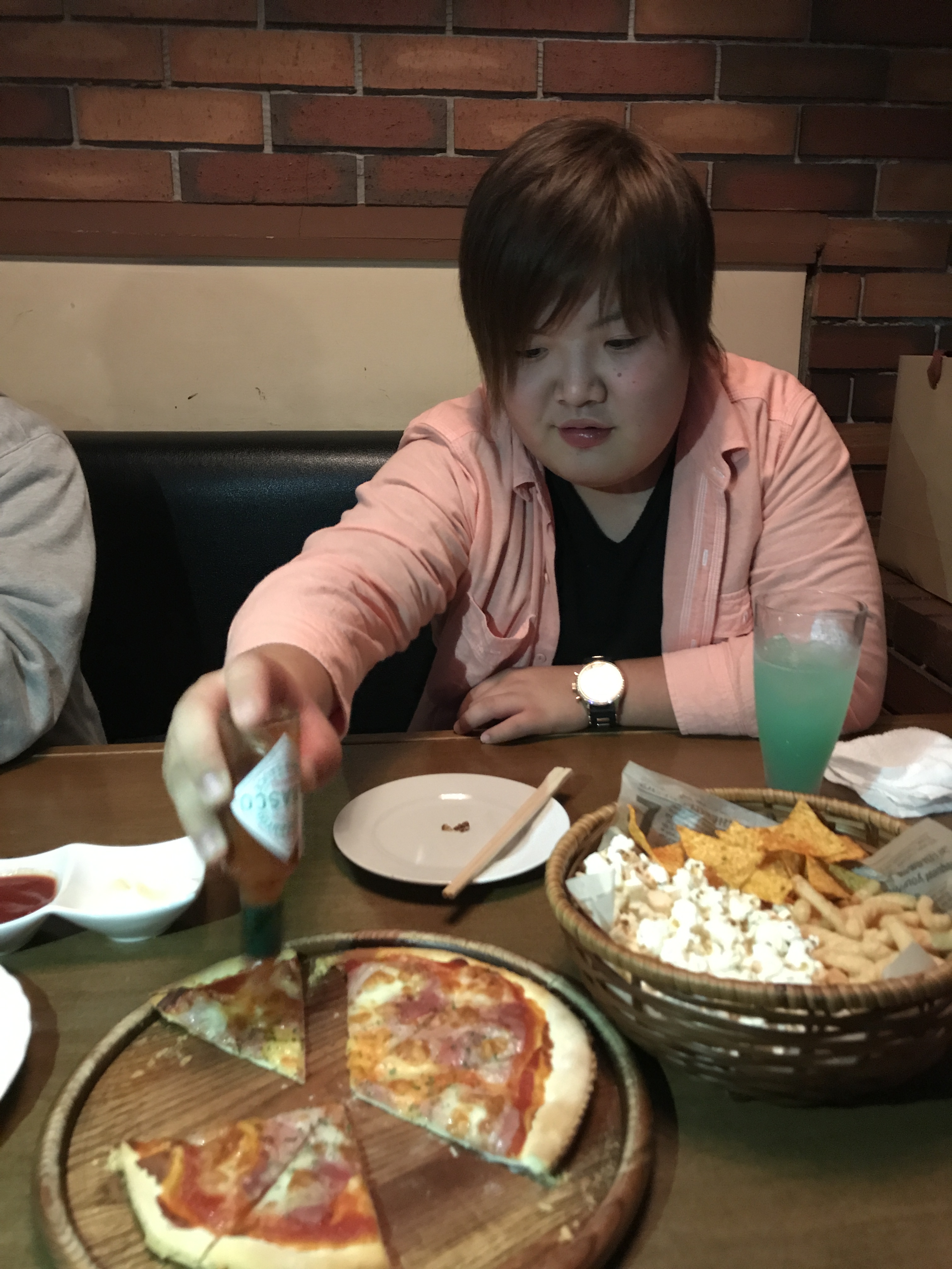 主役のN島君 自らタバスコをかけ