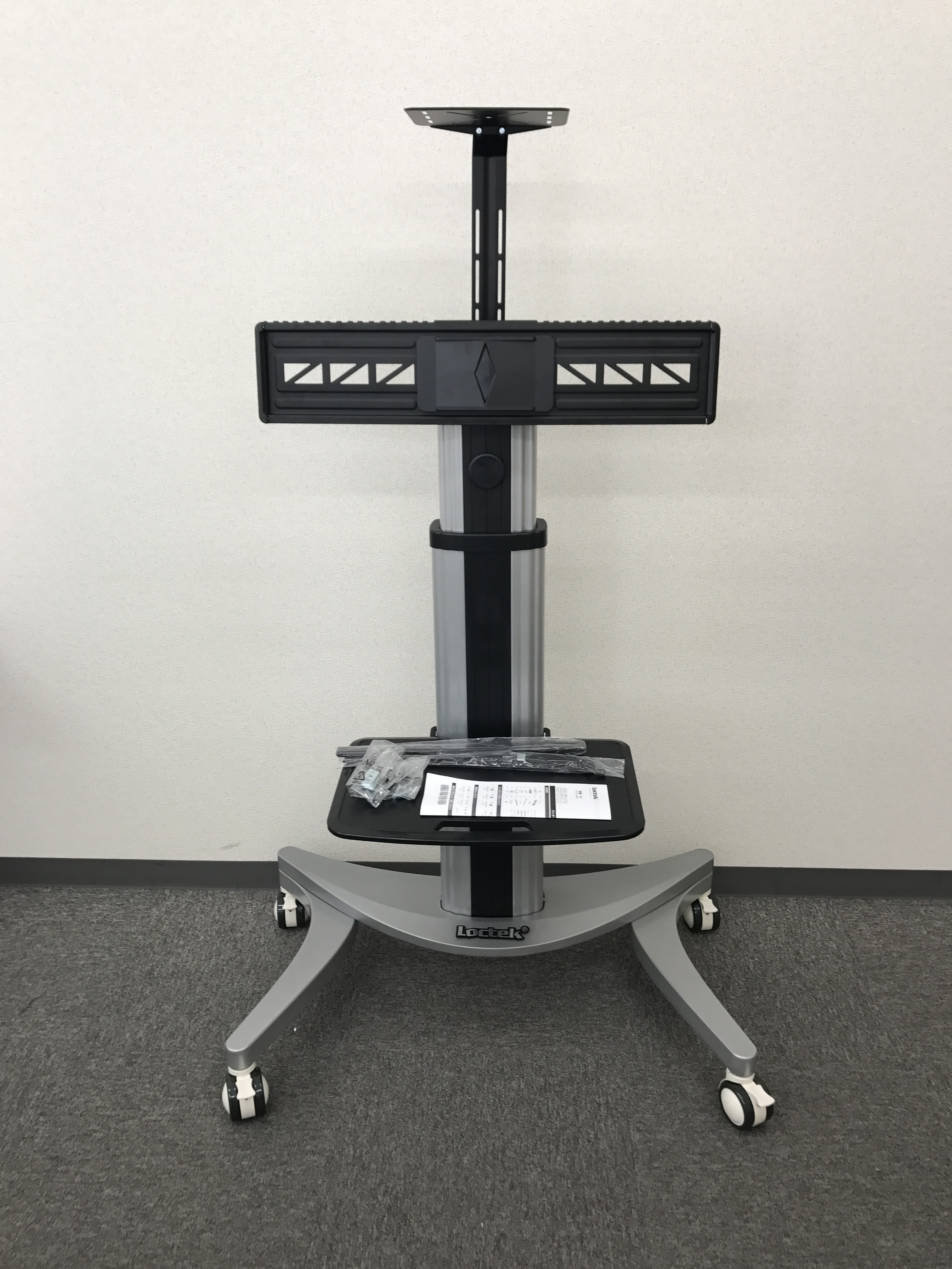 モニター台 会議室用に大型モニターを発注したのですが 先にモニタースタンドが届きました モニターが安かった分 スタンドは少しグレードの良いものを注文・・・・ したのに ちょっとちゃっちぃな・・・・・・凹 プラスチックの質感がイマイチでした(残念) 特に このキャスター シルバーのフレームにホワイトって。。。。 ありえないな 造りはある程度しっかりしているので良しとします モニターの到着が楽しみです