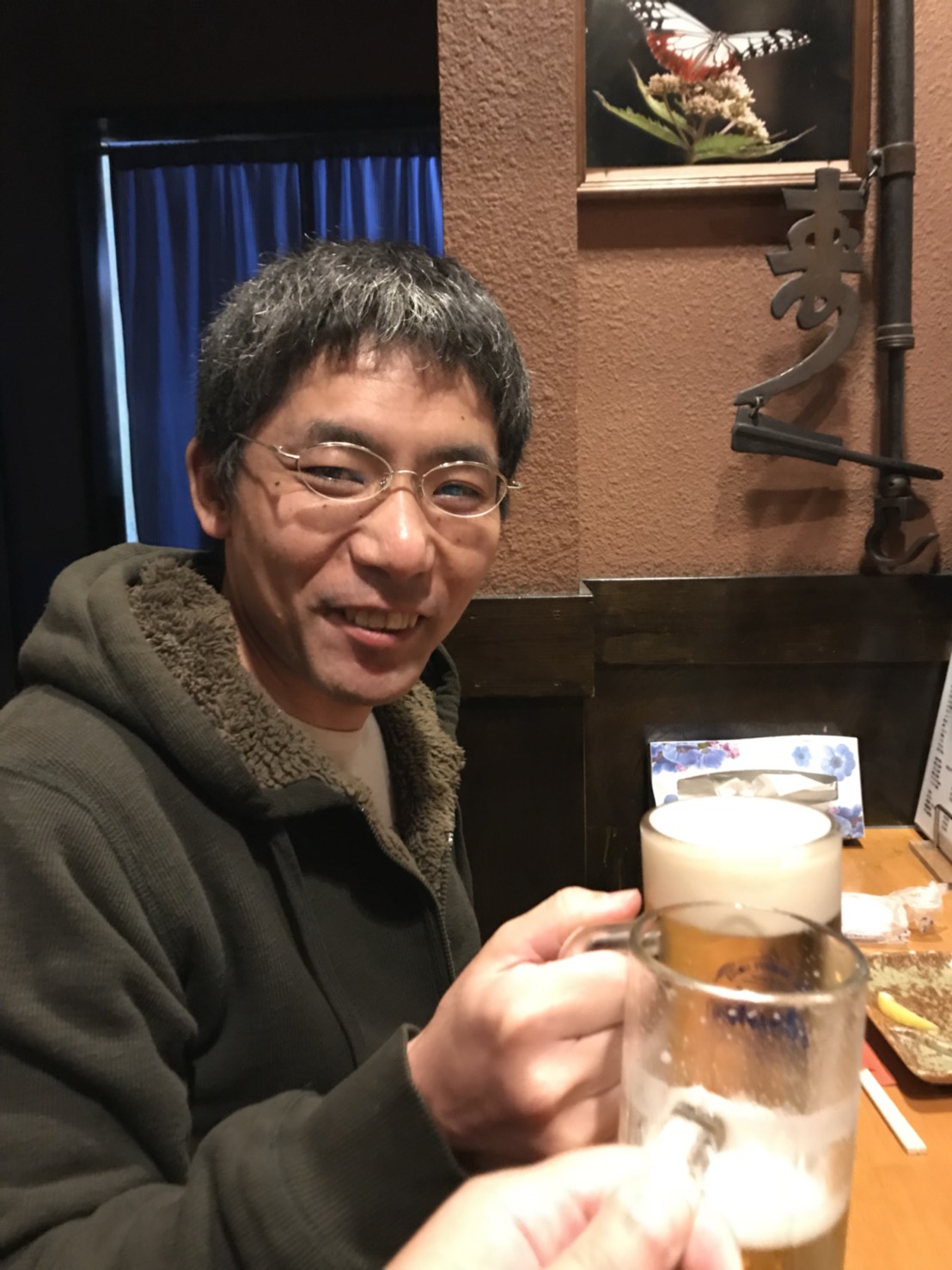 残念ながら山頂までいけなかったH係長と反省会(笑)