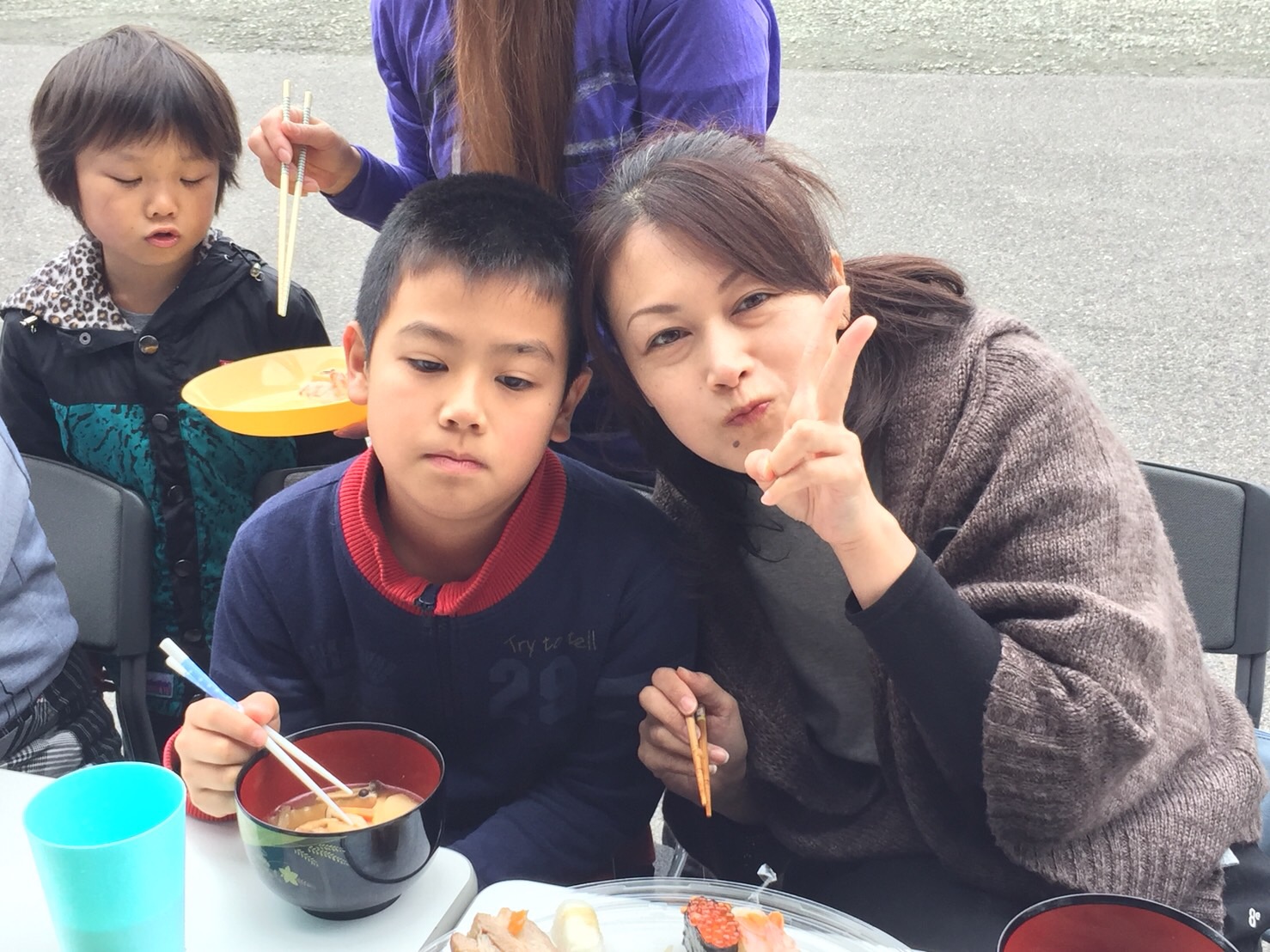 御寿司やスィーツも用意して 芋煮会スタートです