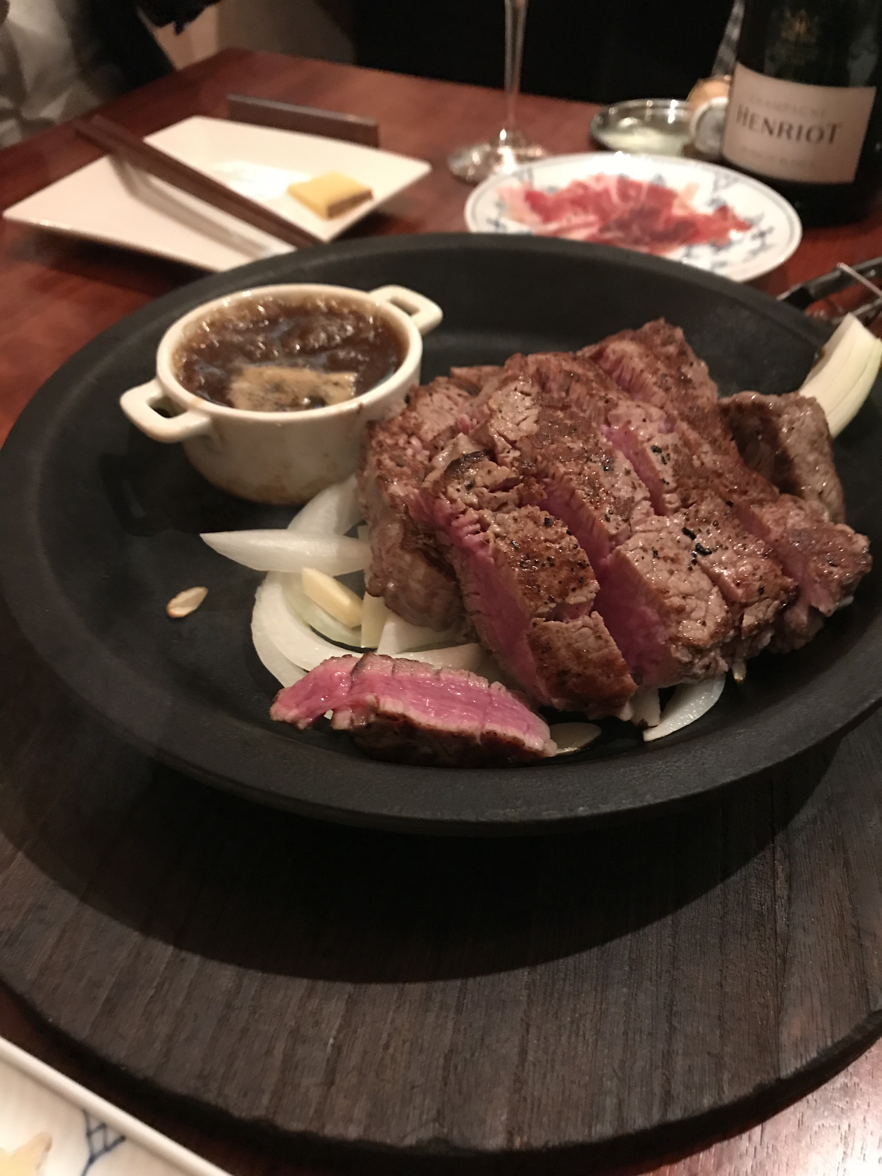 2件目は高級ワインBARでステーキ(笑)