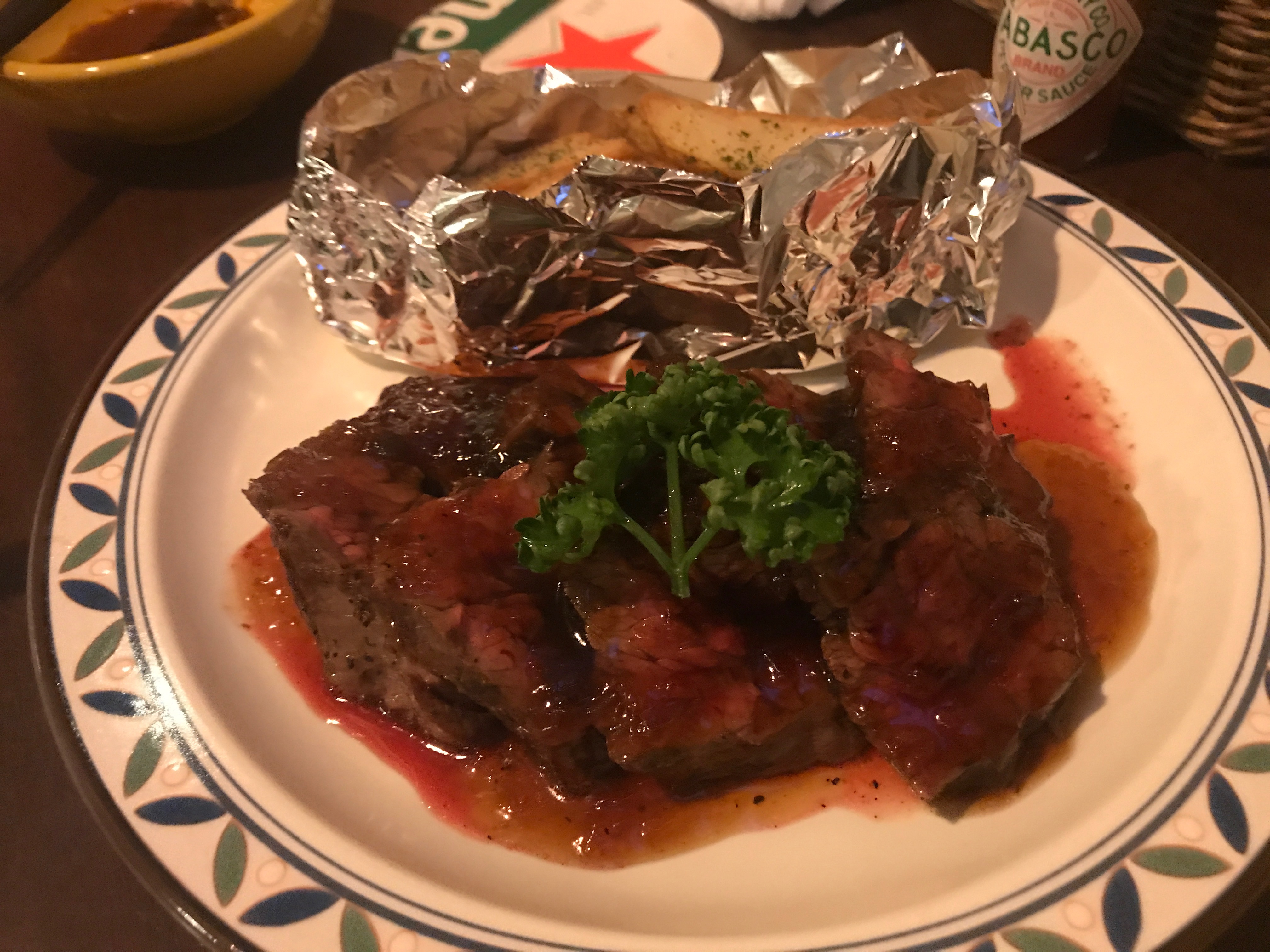 郡山グルメ情報 以前会社の飲み会で伺ったジンヤキッチンさんへ行ってきました 新入社員のM山くんが食べていたポンドステーキをもう一度食べたくて(笑) しかしさすがに450gは食べれないので 半分に出来ないか聞いてみたところ 快くOKいただき 出してもらえました 赤身で食べ応えがあり 大満足でした そのあと 少し飲みすぎたせいもありますが 左馬さんに寄って「辛味噌ラーメン」を頂きました こちらもあっさりしていて 飲んだ後でもモタれません 本日もご馳走様でした