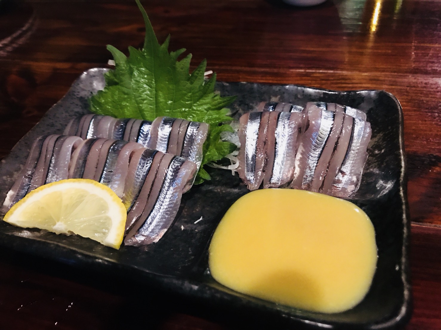 まずはキビナゴの刺身 からし酢味噌で頂きます