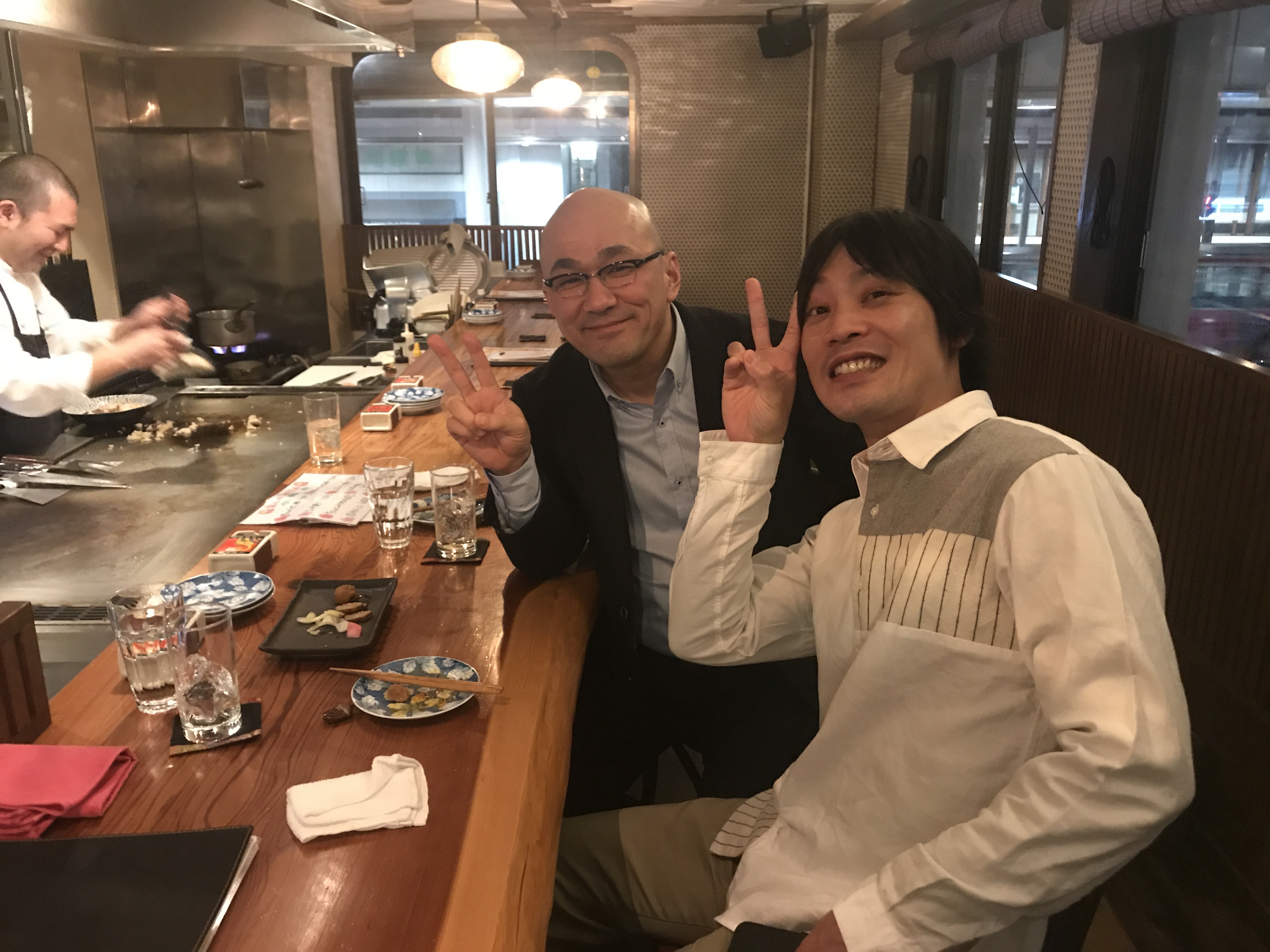 場所はK林主任のリクエスト「肉」に応えて 鉄板焼きのお店「一福(ひとふく)」さんへ