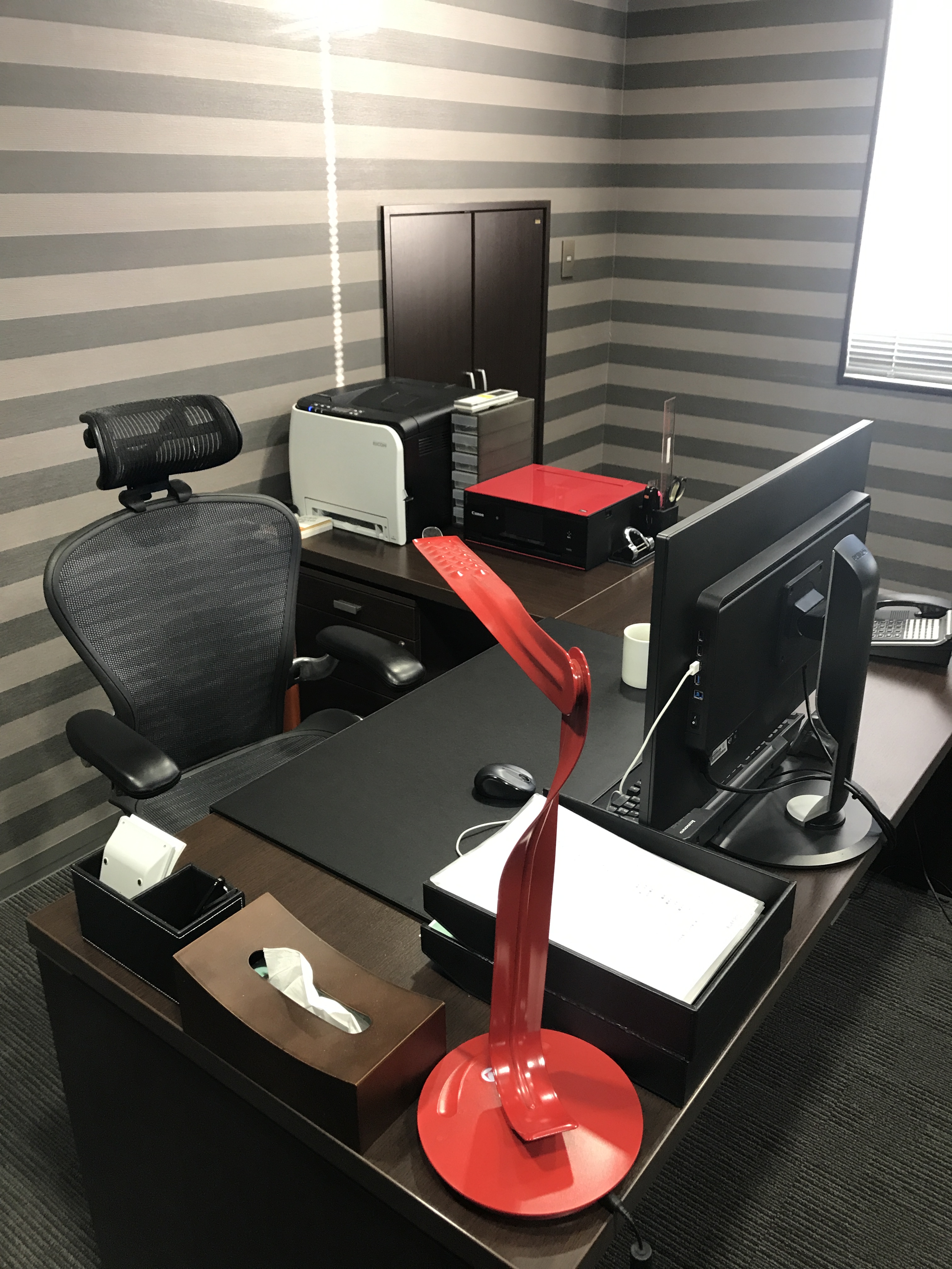 プリンター なくてもなんとかなるのですが あったら便利なインクジェットプリンター スイマセン 社長特権で買わせて頂きました 色は赤で LEDスタンドとプリンターの赤はアクセントということで・・・・(笑) 大事に使います