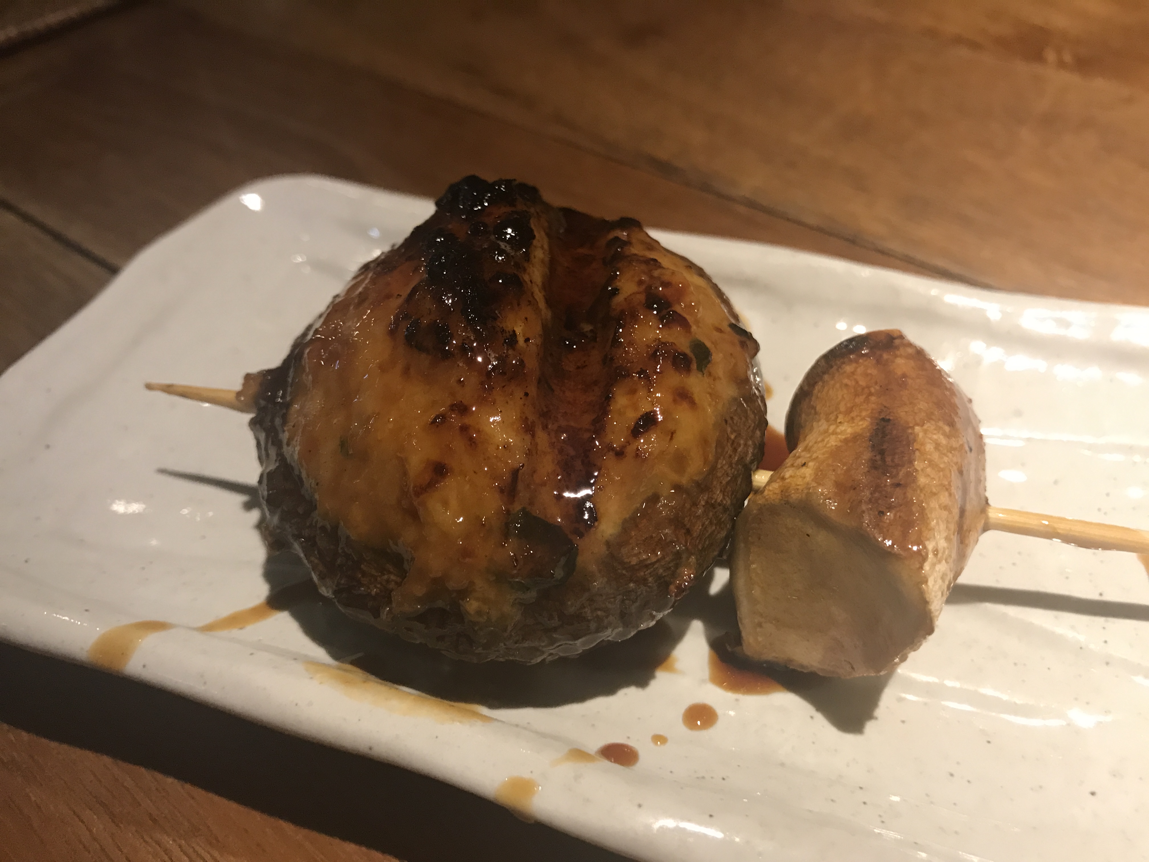 椎茸の肉詰めを箸で押すと ぴゅーっと椎茸汁が出ます(笑)