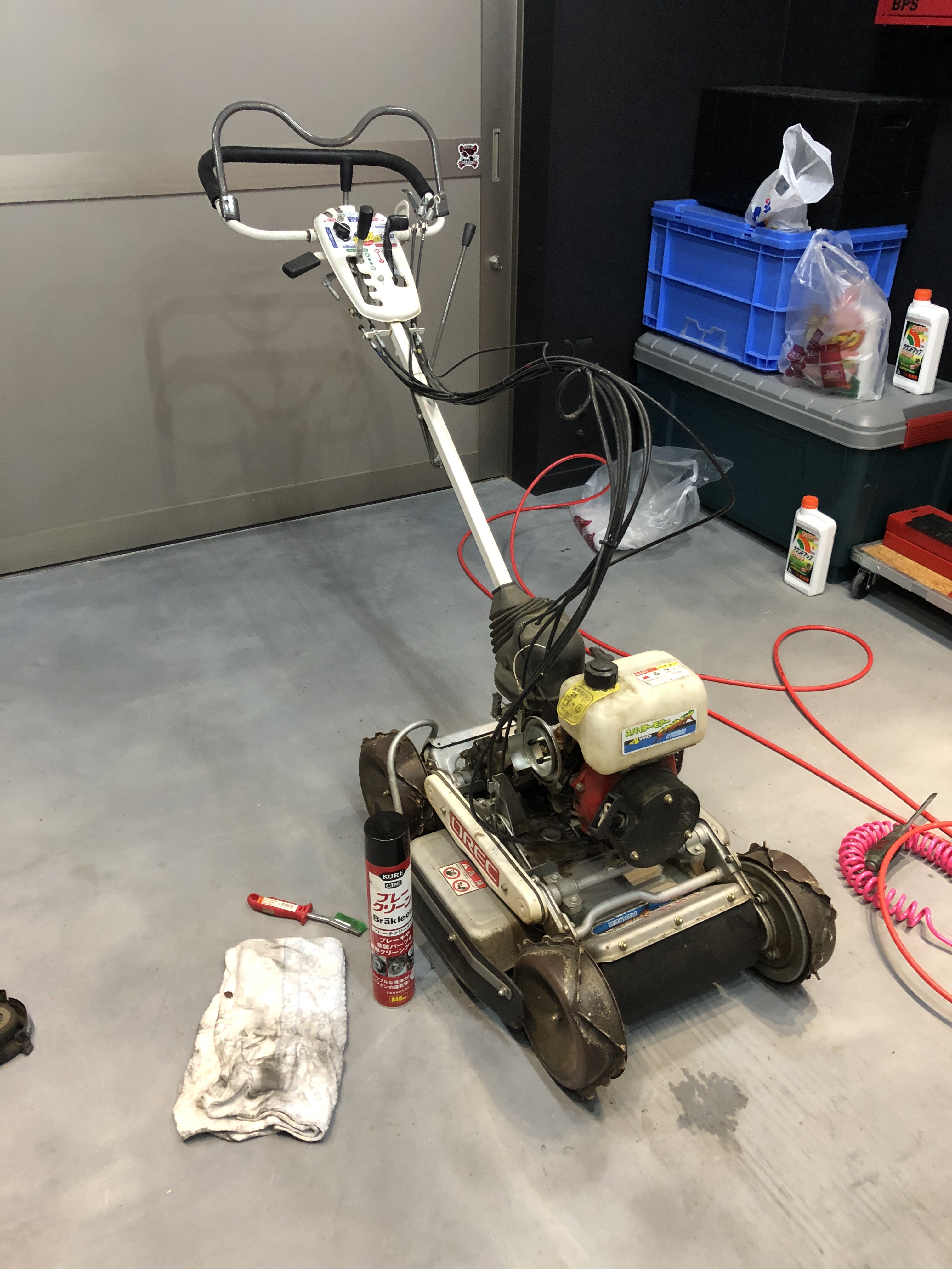 整備 そろそろ除草シーズン到来 来るべき雑草との戦いに備え 相棒達の整備です まずはハスクバーナTS138 乗用草刈機 冬の間のホコリで真っ白です 空冷500ccエンジンのオイル交換 エレメントも交換します バッテリーも充電して エンジン一発始動! 洗車して綺麗になりました 続いてスパイダーモア こちらも各部の作動オイル補充 エンジンは・・・・・ ガソリンが腐ってて キャブ清掃 地味ですがこういう作業 結構好きです(笑) 無事にエンジン始動! 各部作動も問題なし! しっかり草刈やりますよー