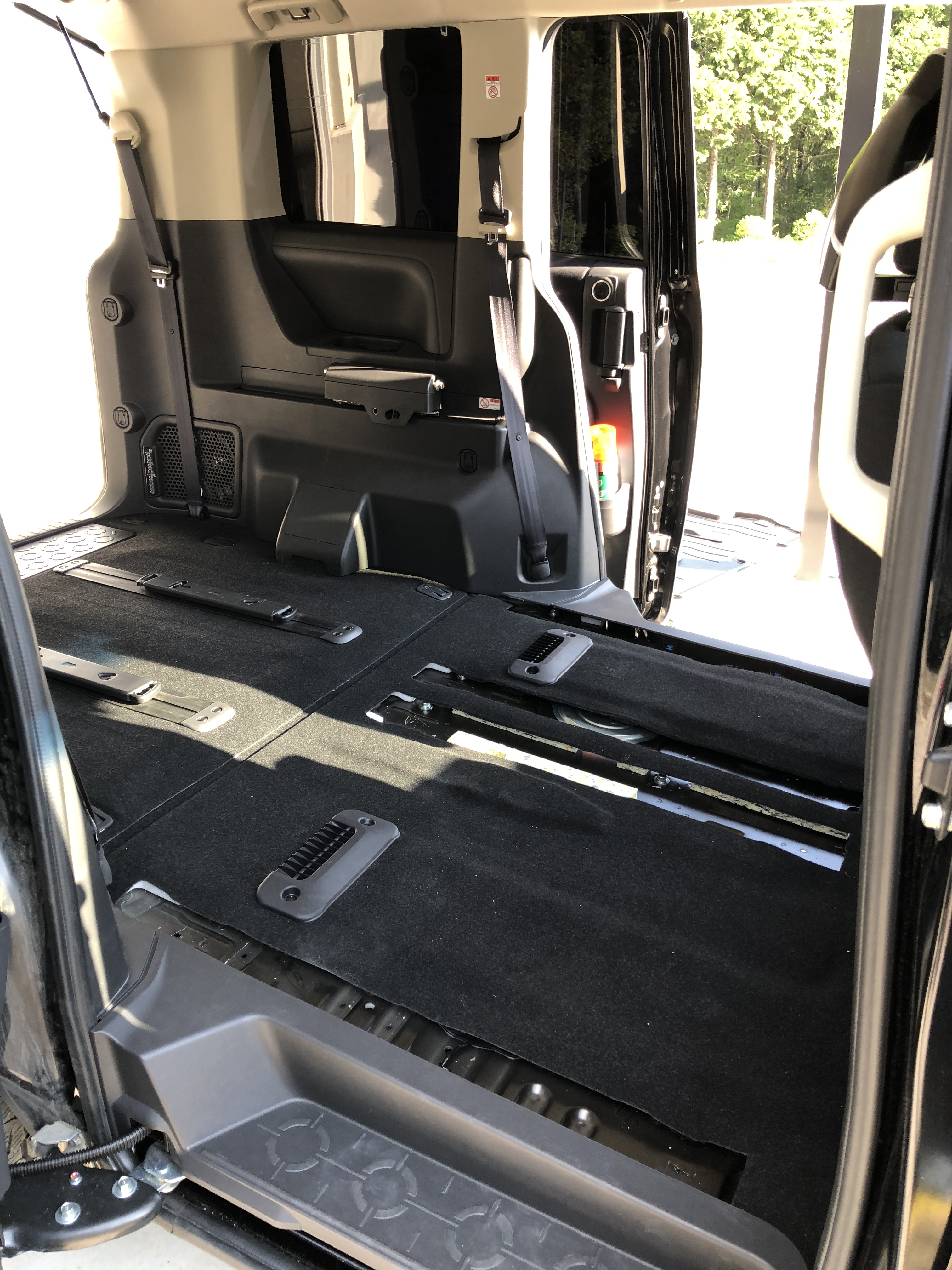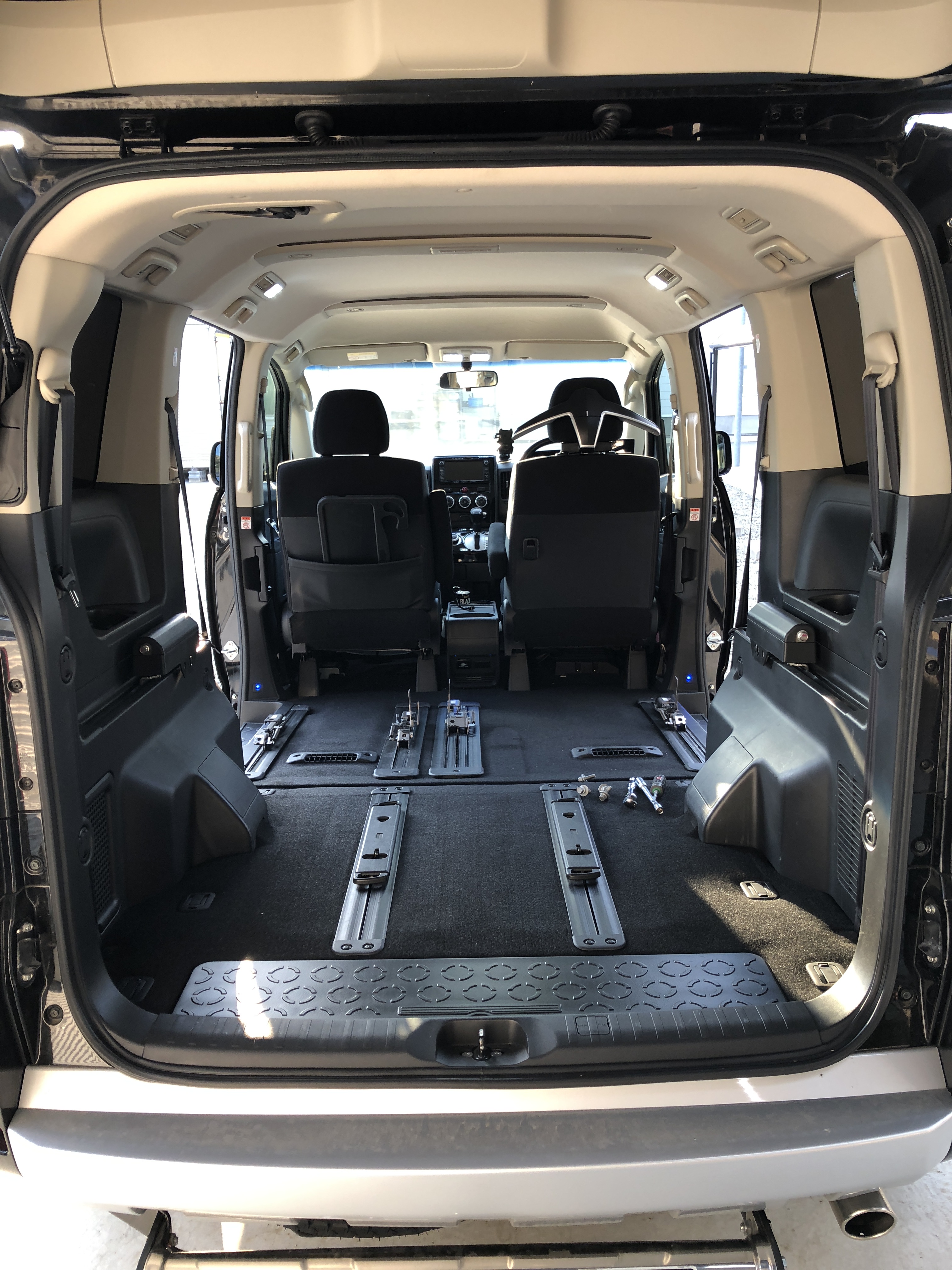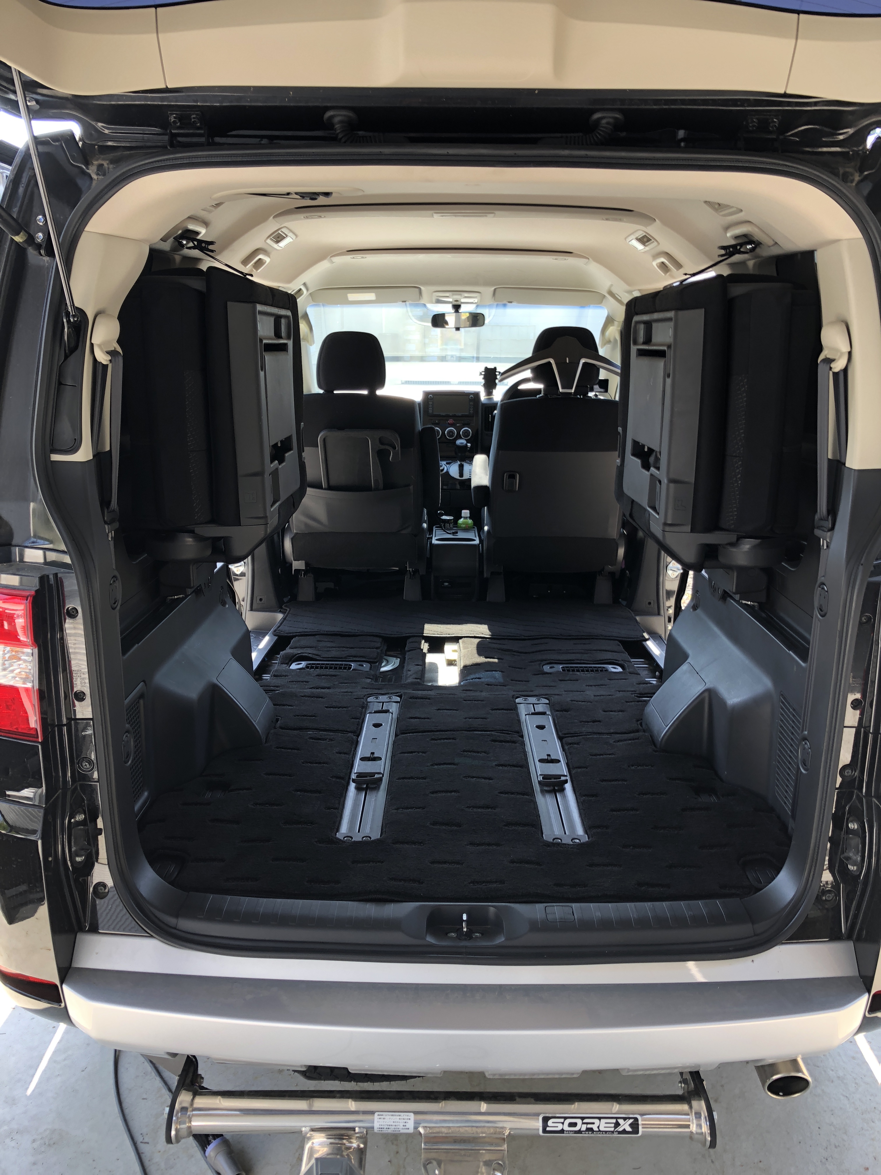 座席 デリカD5が車検から帰ってきました 前からデリカのシートアレンジが気に入らず 早朝より変更作業開始 今はセカンドシートを残し サードシートが無い状態 セカンドシートを外します(腰痛い・・・・) おー 広々空間 次に出っ張っているシートレールも取っちゃいます これでもいいかな・・・・ いやさすがに2人乗りって訳にはいかないので サードシートを取り付け 足元広々 リムジン仕様です シートレールの穴ぽこは そのうち埋めます(笑) 朝8時作業終了(笑) これから仙台に出張です