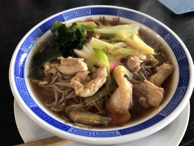近所の本宮庵で 鶏肉そばを注文 口癖の「大盛り」が災いして ラーメンどんぶりで蕎麦が出てきました(汗)