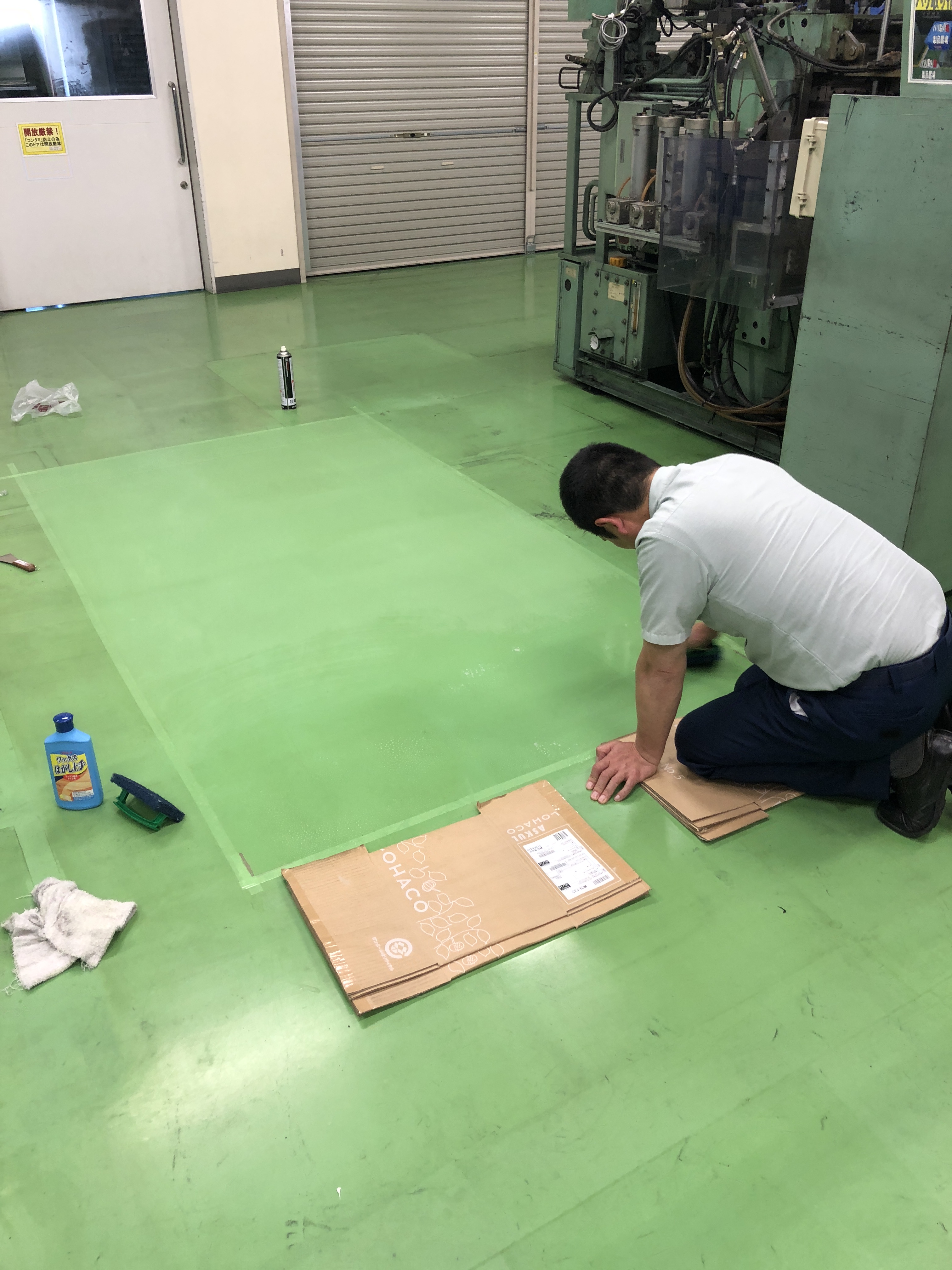 新設 T原本部長と2人 休日出勤 お昼 近所に新しく開店した「岳空」さんへ行ってきました 地産地消・無農薬野菜等にこだわって作られているようです 戻ってから T原本部長と2人 仲良く始めての環境整備(笑) 新規設備受入準備として床を磨き上げます 結構汗だくで3時間くらいやりましたかね? ワックスも塗り そこそこの仕上がり 日曜 色々アクシデントもありましたが 無事新型成形機が一導入されました!r 安全に使っていただきたいと思います しかし デカイな この設備は(苦笑)