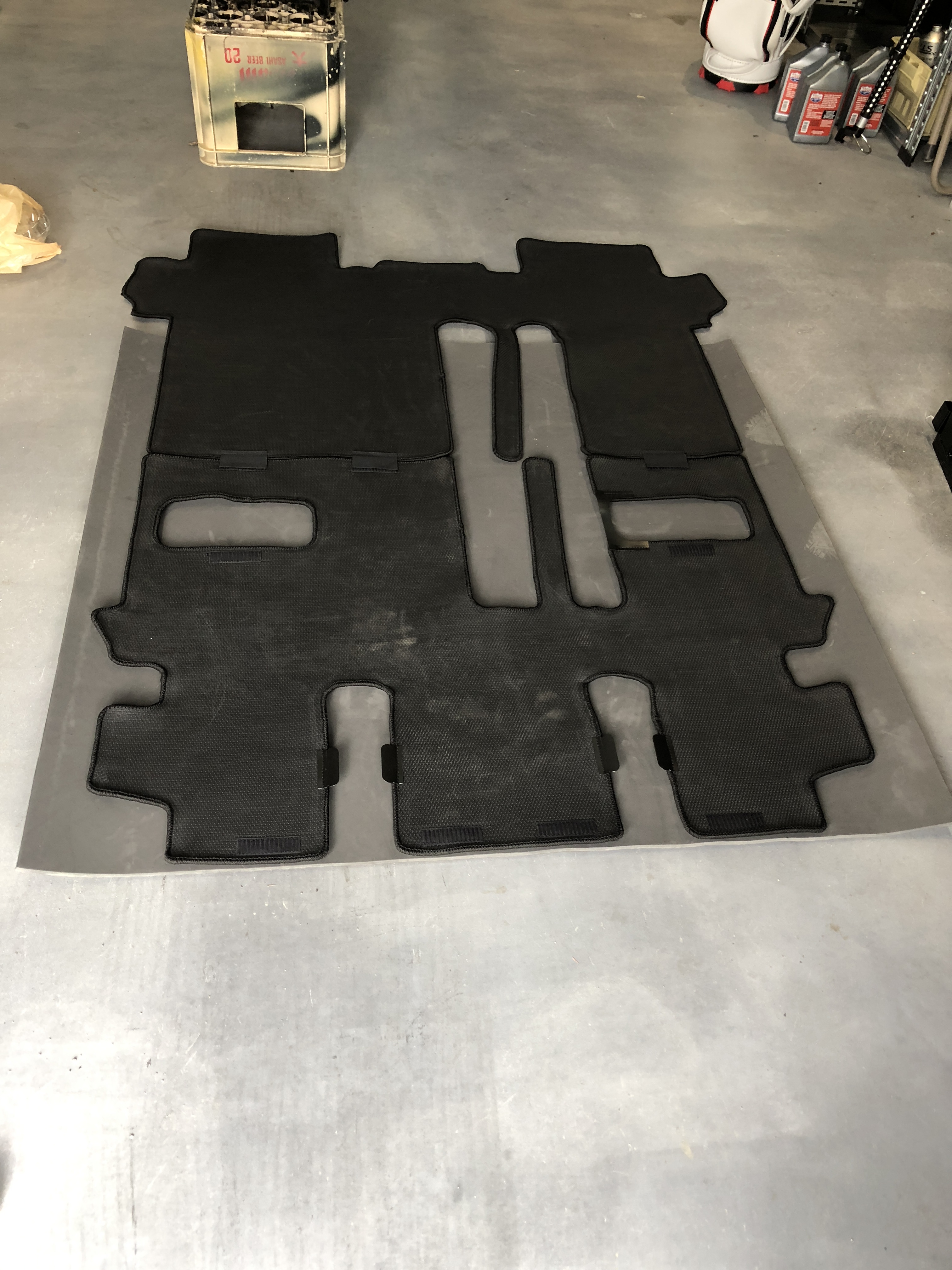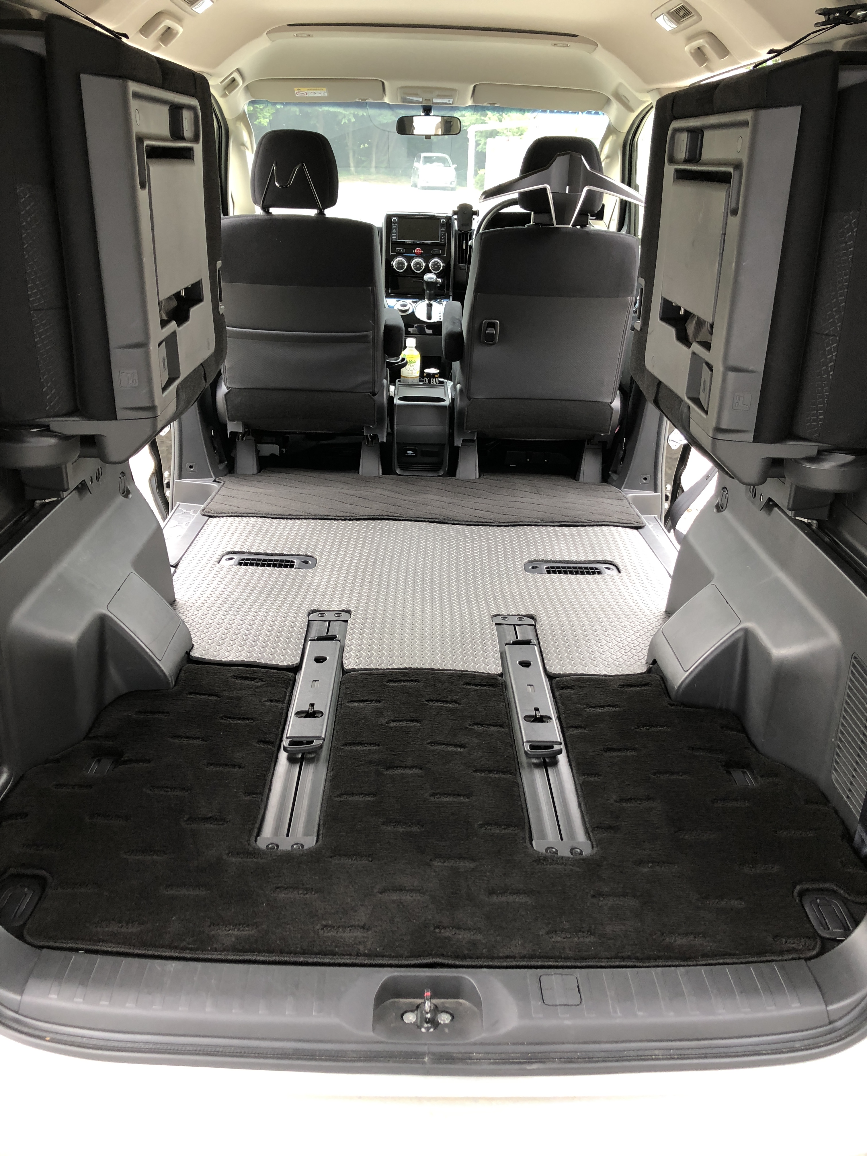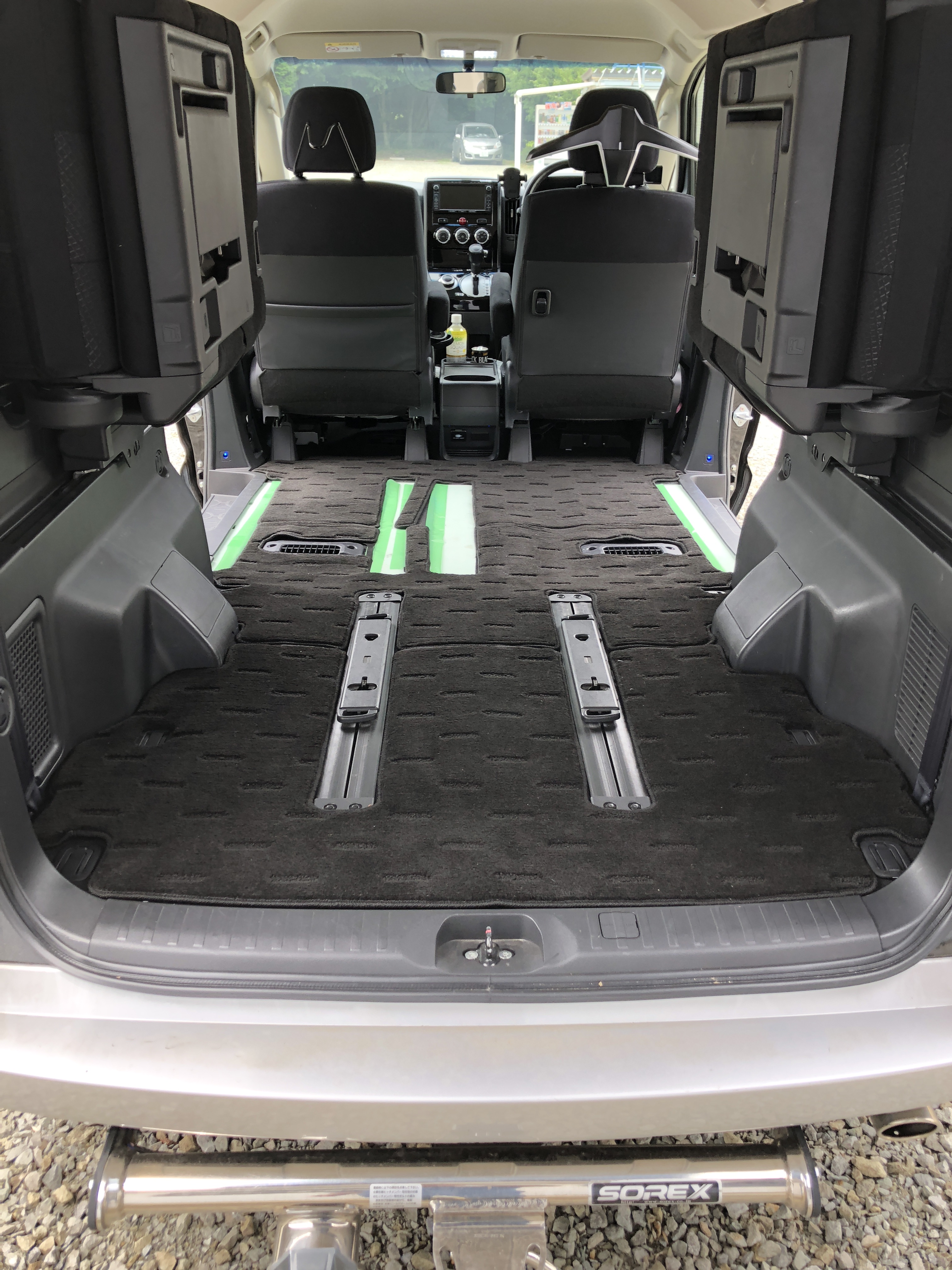 型取 以前 セカンドシートをぶっ外したデリカD5 シートレールの穴は発砲スチロールで埋めてはいましたが なんだか貧乏臭い感じになってました(笑) 時間が出来たので早速ネットで購入したスポンジマットを型取り 汗だくでカット(笑) このあたりは靴の泥や モービルの時の雪で濡れるので 表面はビニール加工のスポンジマットをチョイスしました ゴムマットだと匂いがキツイんです スッキリ! 荷物の積み下ろしもOKです!