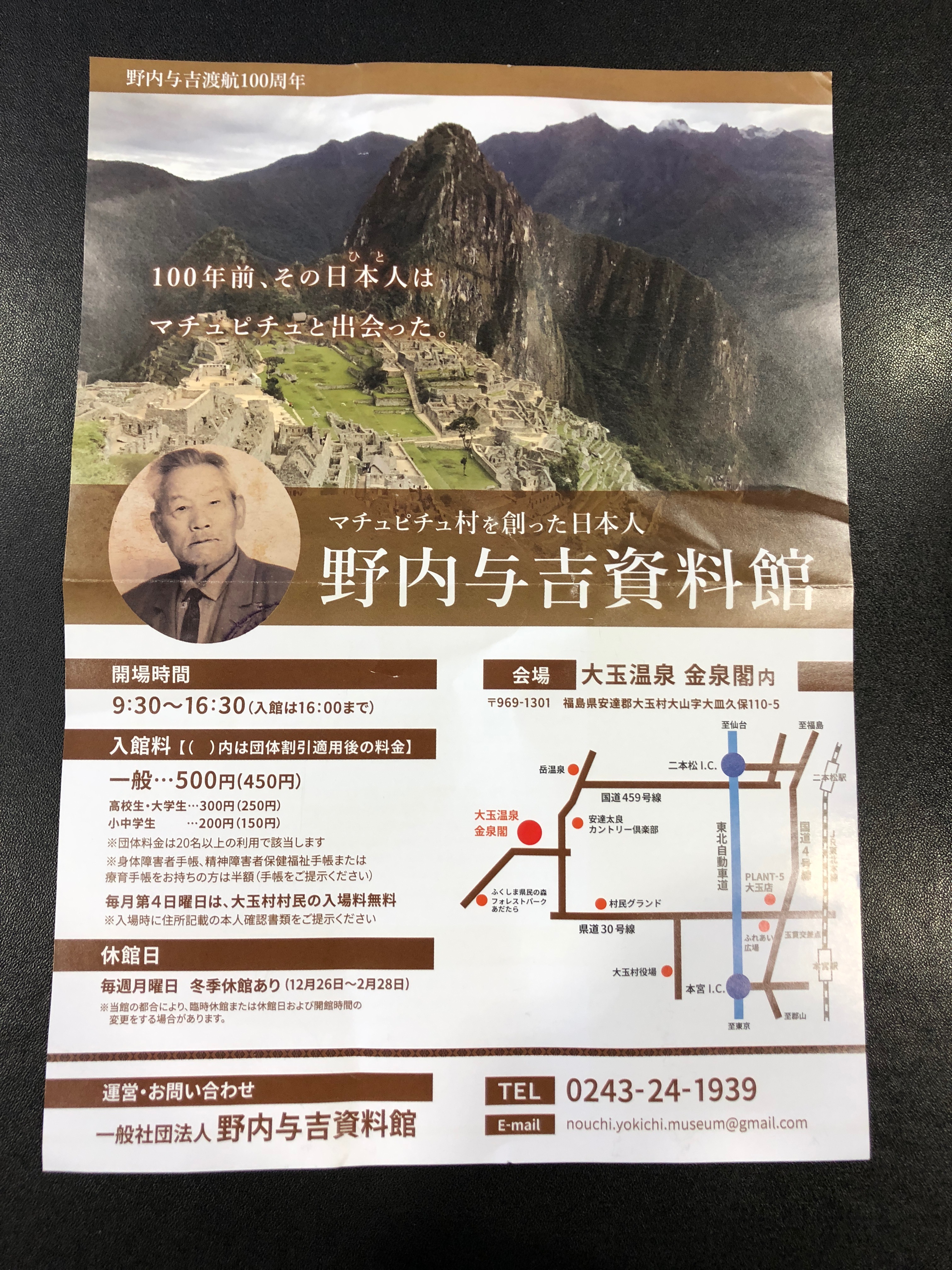 マチュピチュ村 初代村長の野内与吉資料館のチラシがありました