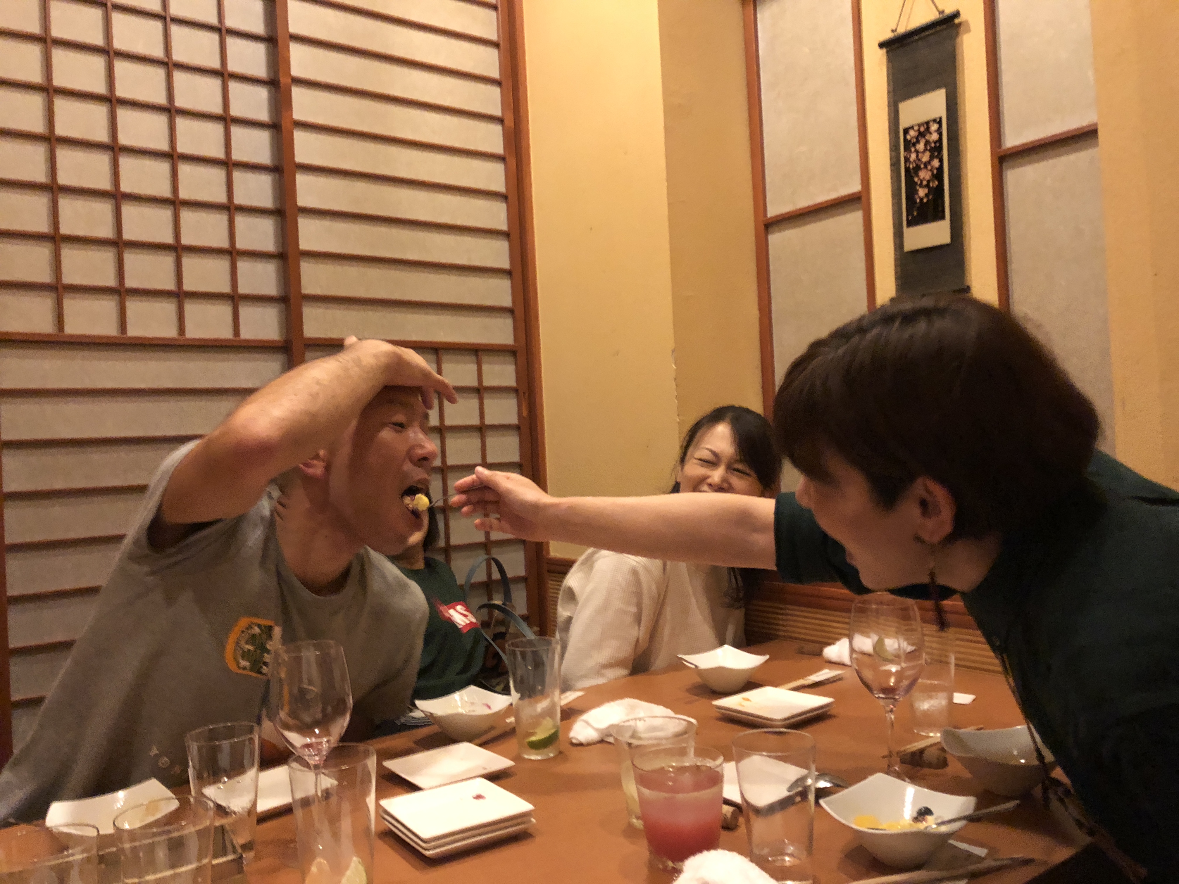 LINE@会 第19回LINE@会 in 郡山飲み 今回は7名参加「四方山」さんで美味しいもの頂きます! まずは乾杯! お肉にワイン 料理もお酒も最高です デザートあぁ~んタイム(笑) お酒も入って だいぶ盛り上がりました 2次会に行かない代わりに ミスタードーナツ詰め放題サービス(笑) 皆 遠慮無いな(苦笑) ミスドで1万近く支払ったのは初めてです 店員さん総動員で箱詰めしてもらいました 次回のLINE@会は芋煮会の予定です 皆さん お楽しみに