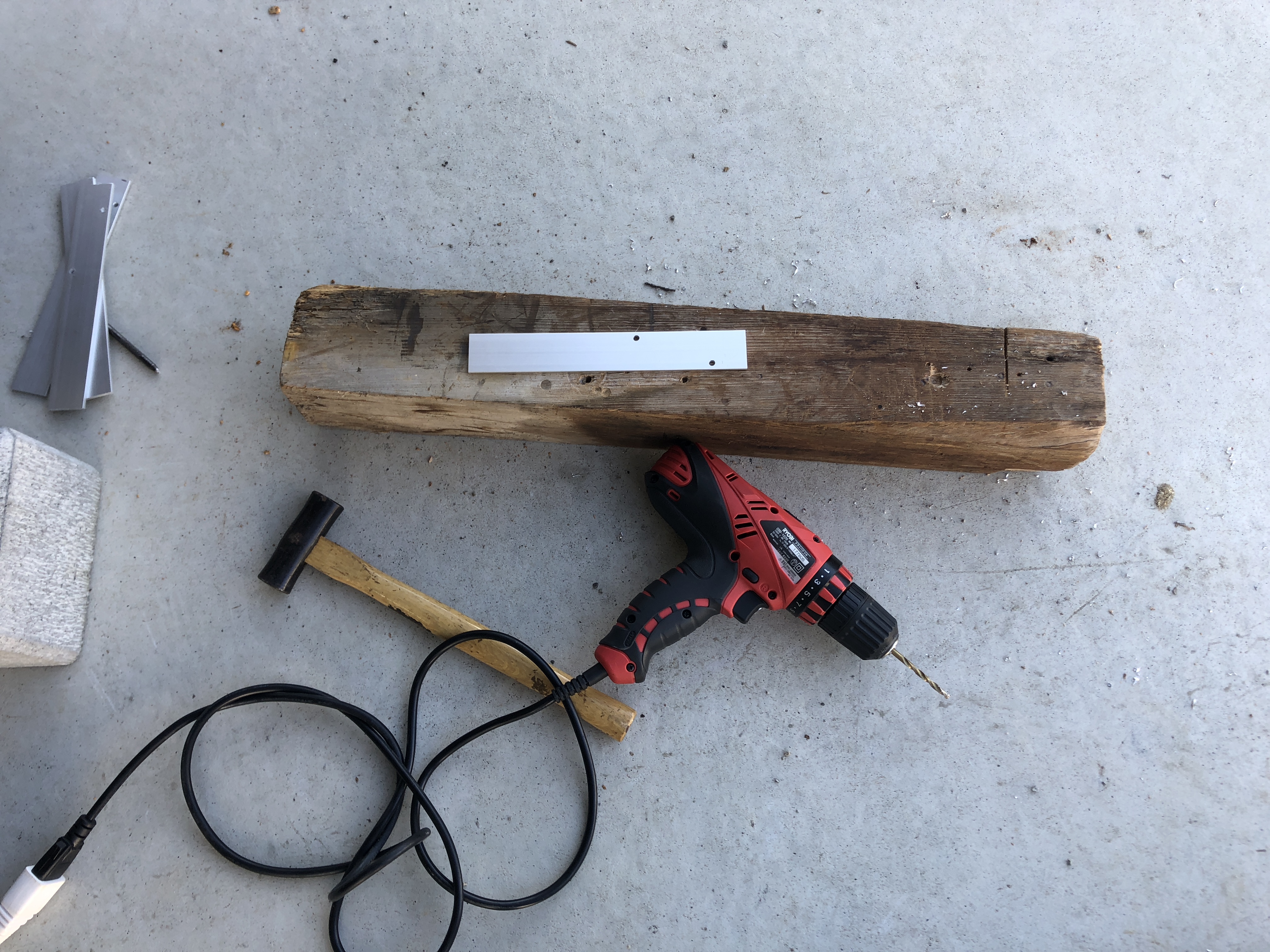表示 白岩工場の駐車場表示 自分で設置したのですが 草刈の時には邪魔になるし 微妙に曲がってるしで 気に入らない 引っこ抜いて パネル部分を剥がします ホームセンターでアルミステーを購入 適当な長さにし 穴あけ こちらもホームセンターで購入した コンクリートブロック基礎にステーをネジ止め 表示パネルを付けて出来上がり 今度は曲がってないですね(笑) 合計4個作成 綺麗に並びました これで草刈も楽々です