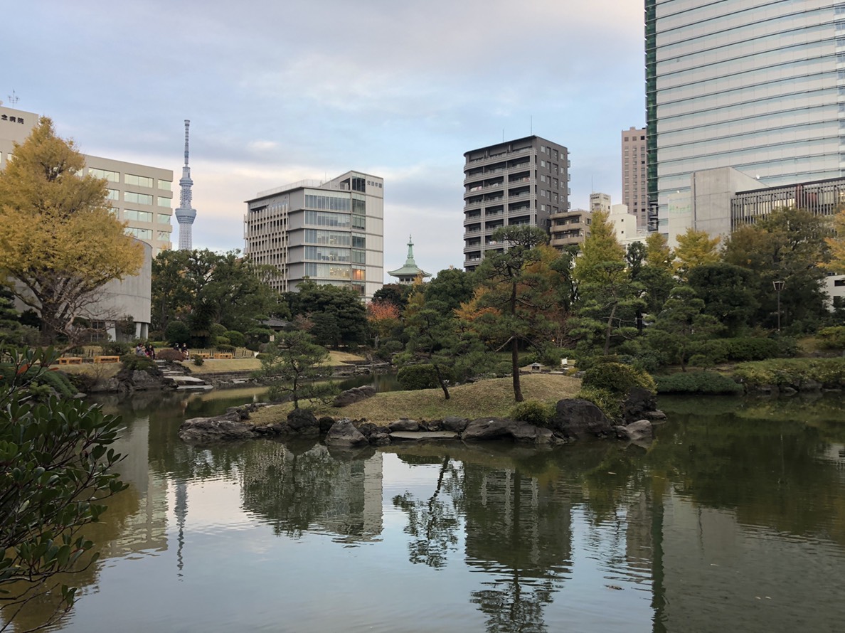 奉仕 研修のため 東京 両国に来ました 研修の性質上 何をするのかは 書けませんが 「勤労奉仕」とだけ書いておきます 夕方6時集合なのですが 少し早く着いたので両国の周辺見学 残念ながら月曜のた江戸東京博物館は休館日 国技館の資料館も終わってました 隅田川脇を散歩し 旧安田邸を見学 東京は紅葉して綺麗な季節 歴史的な庭園からスカイツリーが見えます 明日から本格的な奉仕作業 4日間 しっかり務めたいと思います 会社のほうは よろしくお願いしますね