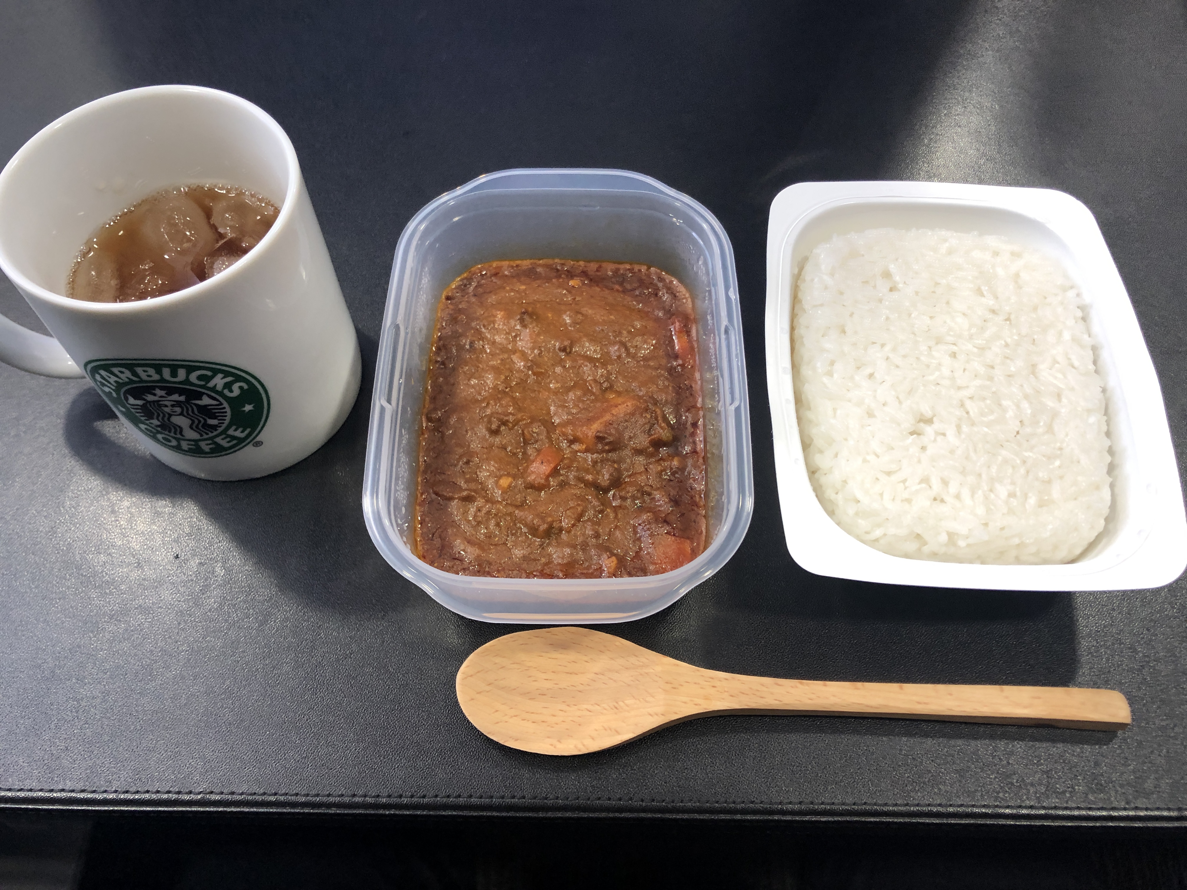 お昼は自分で作って冷凍しておいたカレーをチンして食べました