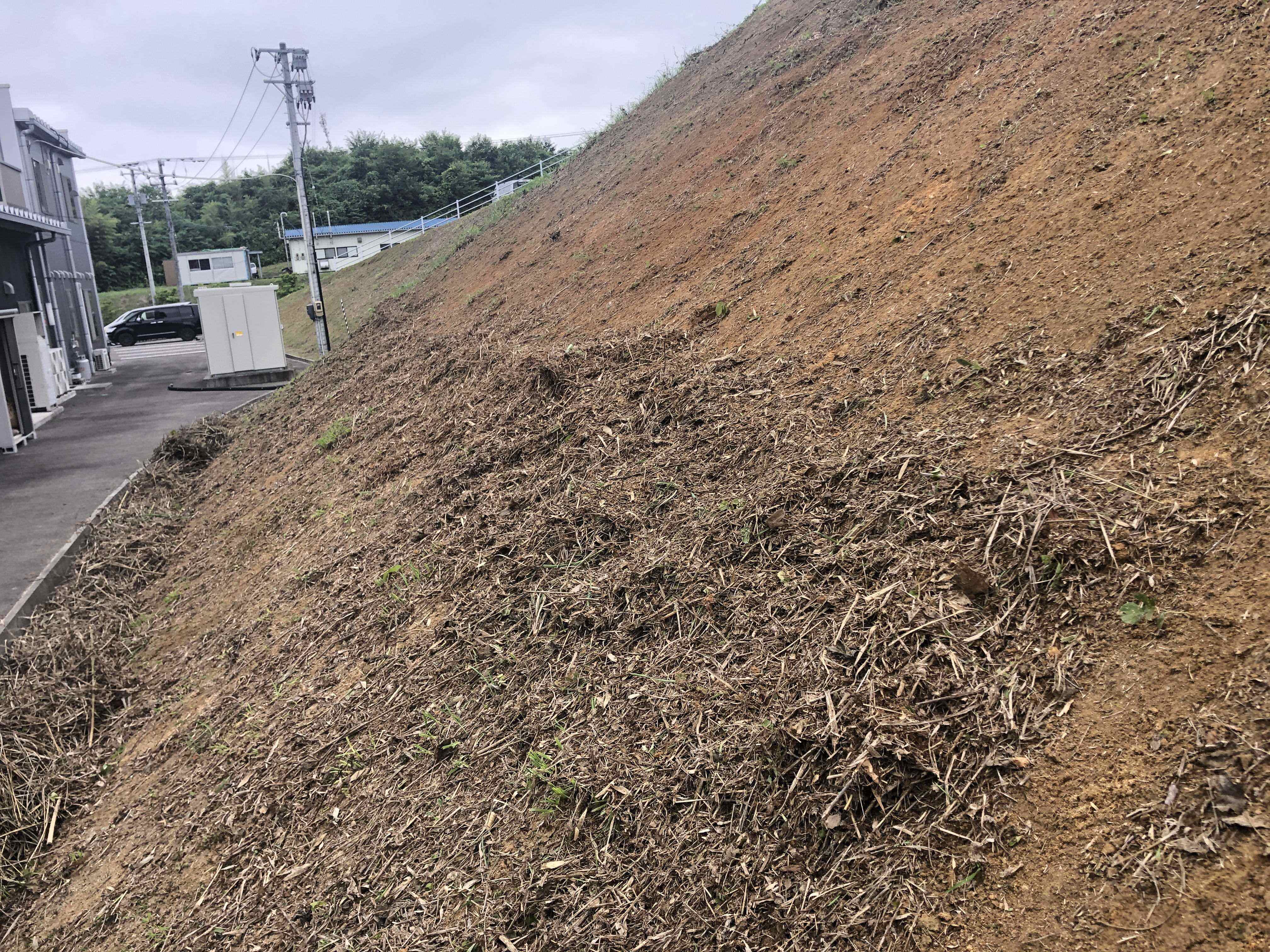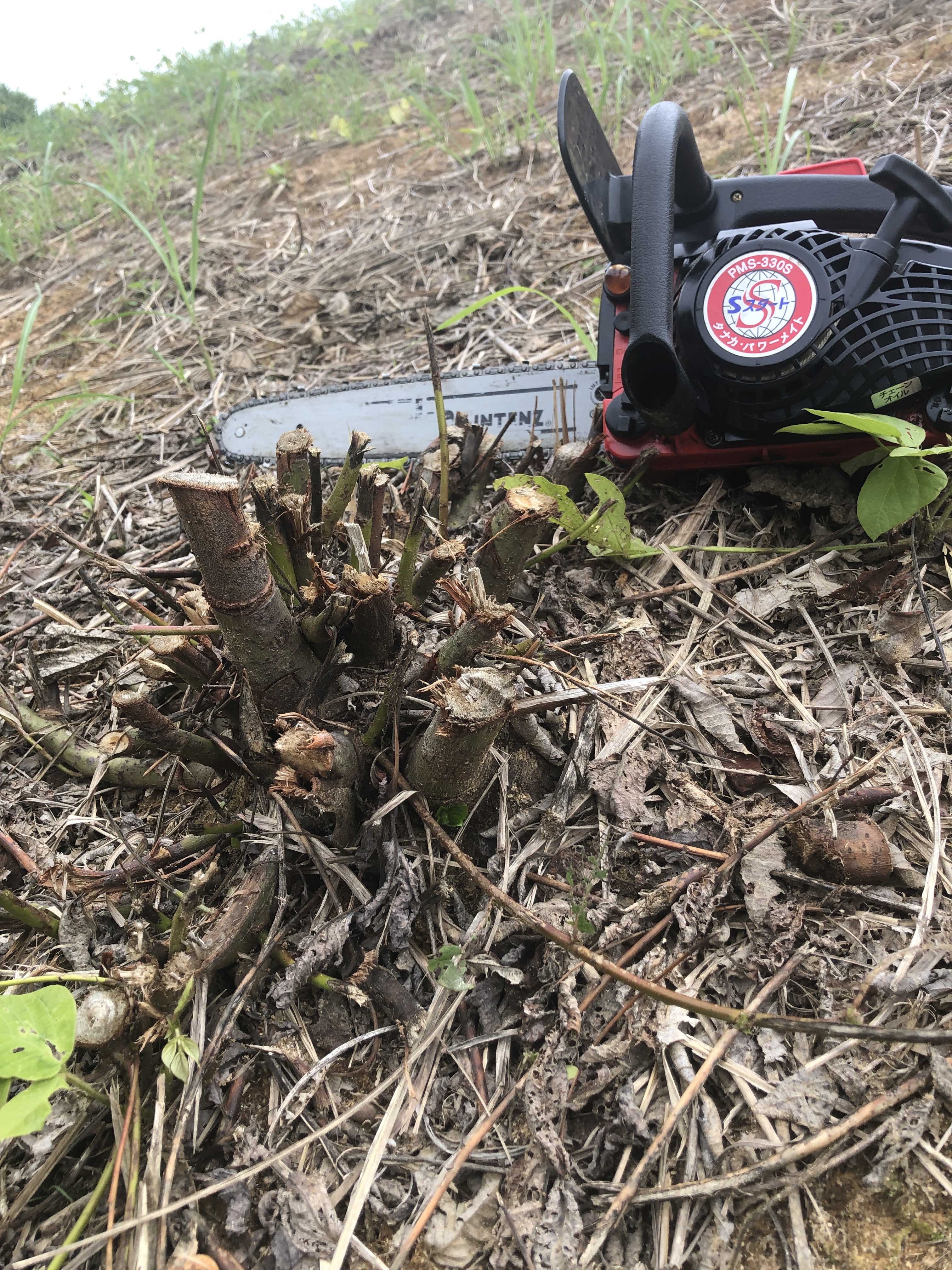 切株。 どうしてもラーメンが食べたくて T原本部長とランチミーティング 仕事のこと 休日の過ごし方などを話しました 午後から草刈り開始! 本日は のり面の雑木の切株除去作業 チェーンソーで挑みます 格闘すること20分 やっと取れました まだまだいっぱいあるので 少しずつやります のり面の草刈り 前回刈った時 草を下ろさなかったので 草が刈りにくい状況に・・・・ 刈りながら 下ろしながら 汗だくで3時間・・・・ 本日のノルマ達成です もう少しで こののり面も綺麗になります 腰痛い 苦笑