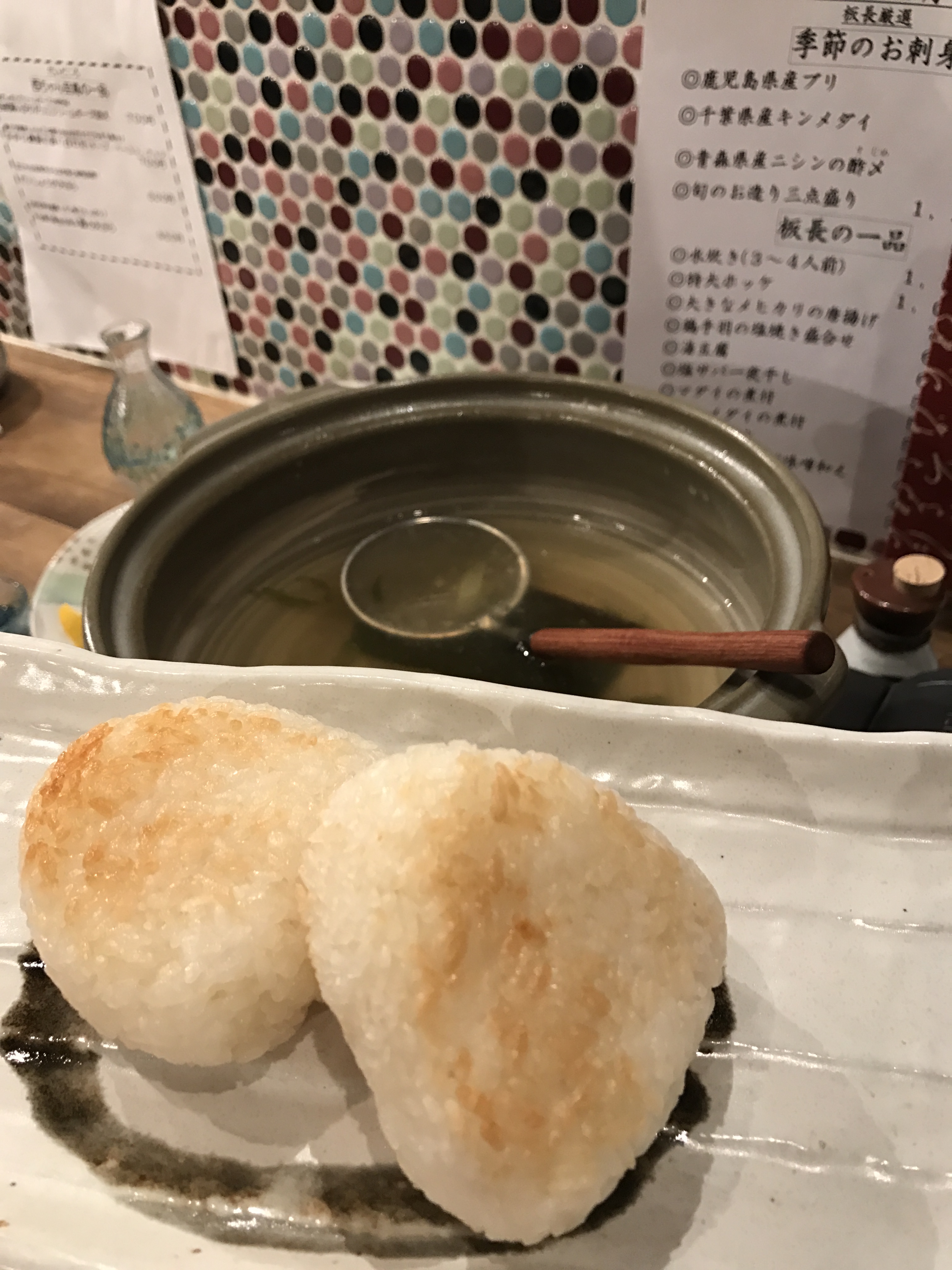 〆はブリしゃぶの鍋に 焼きおにぎりをIN!