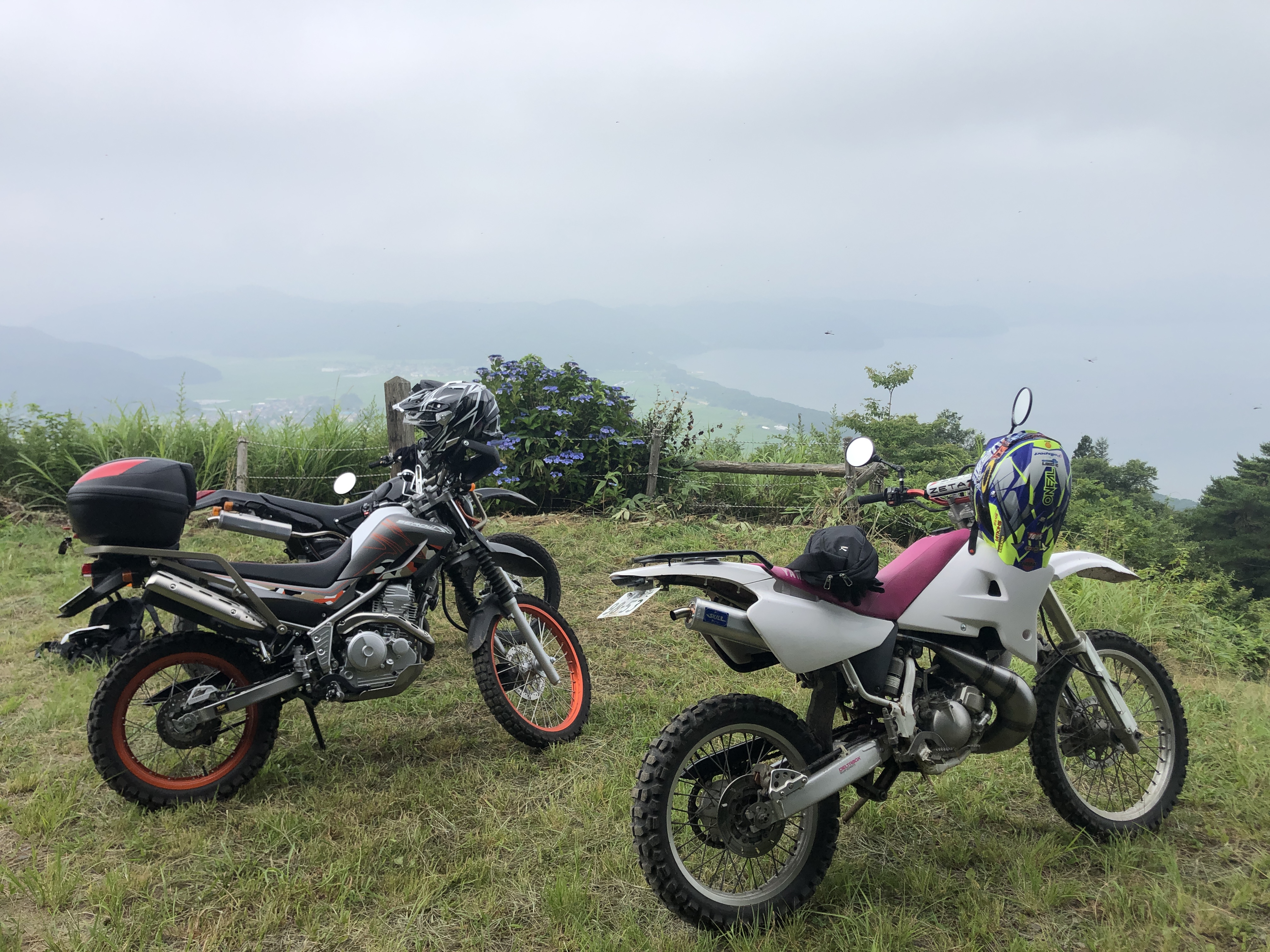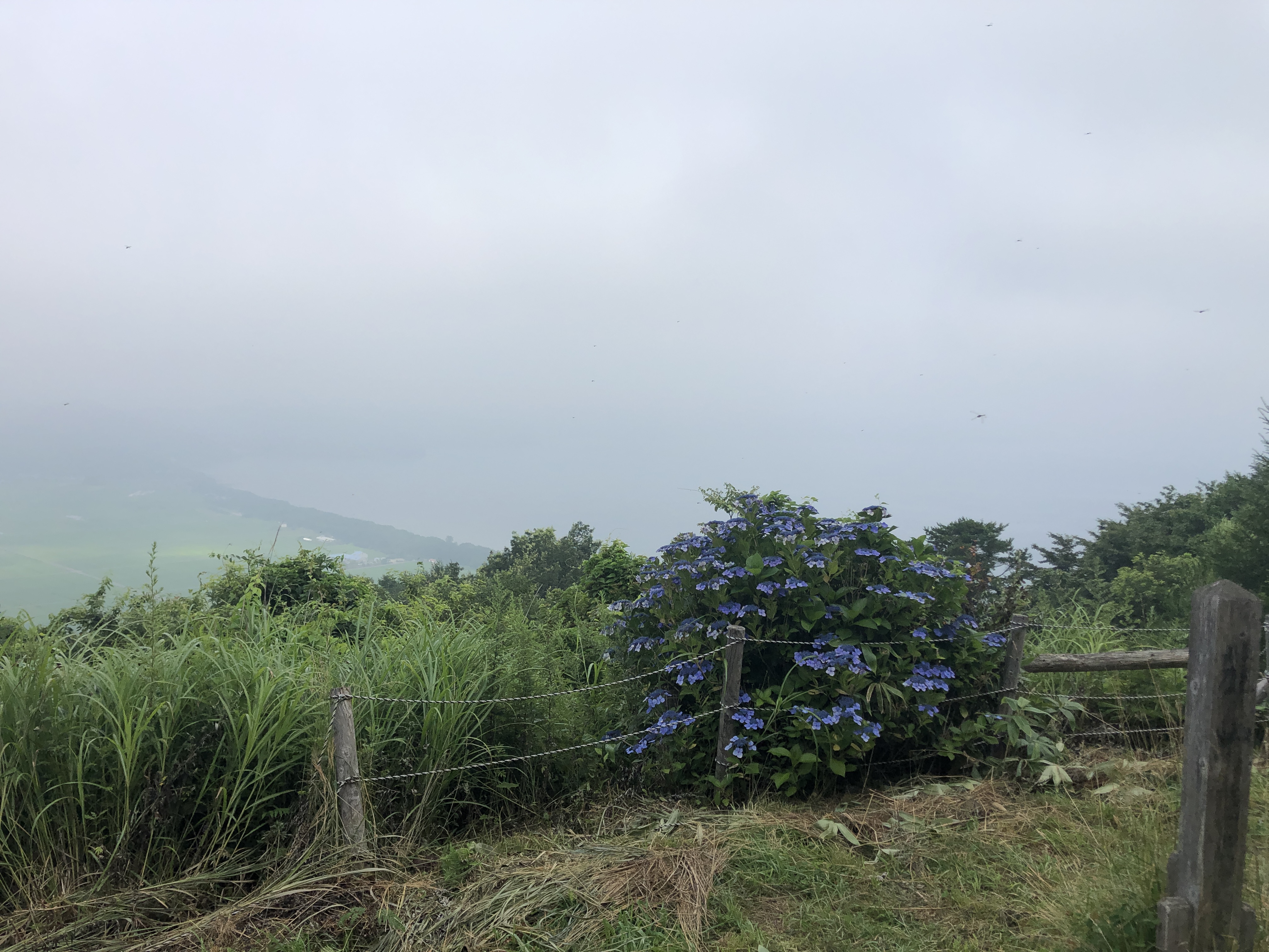 走る事1時間 少しガスってますが 猪苗代湖が見渡せるスポットへ到着