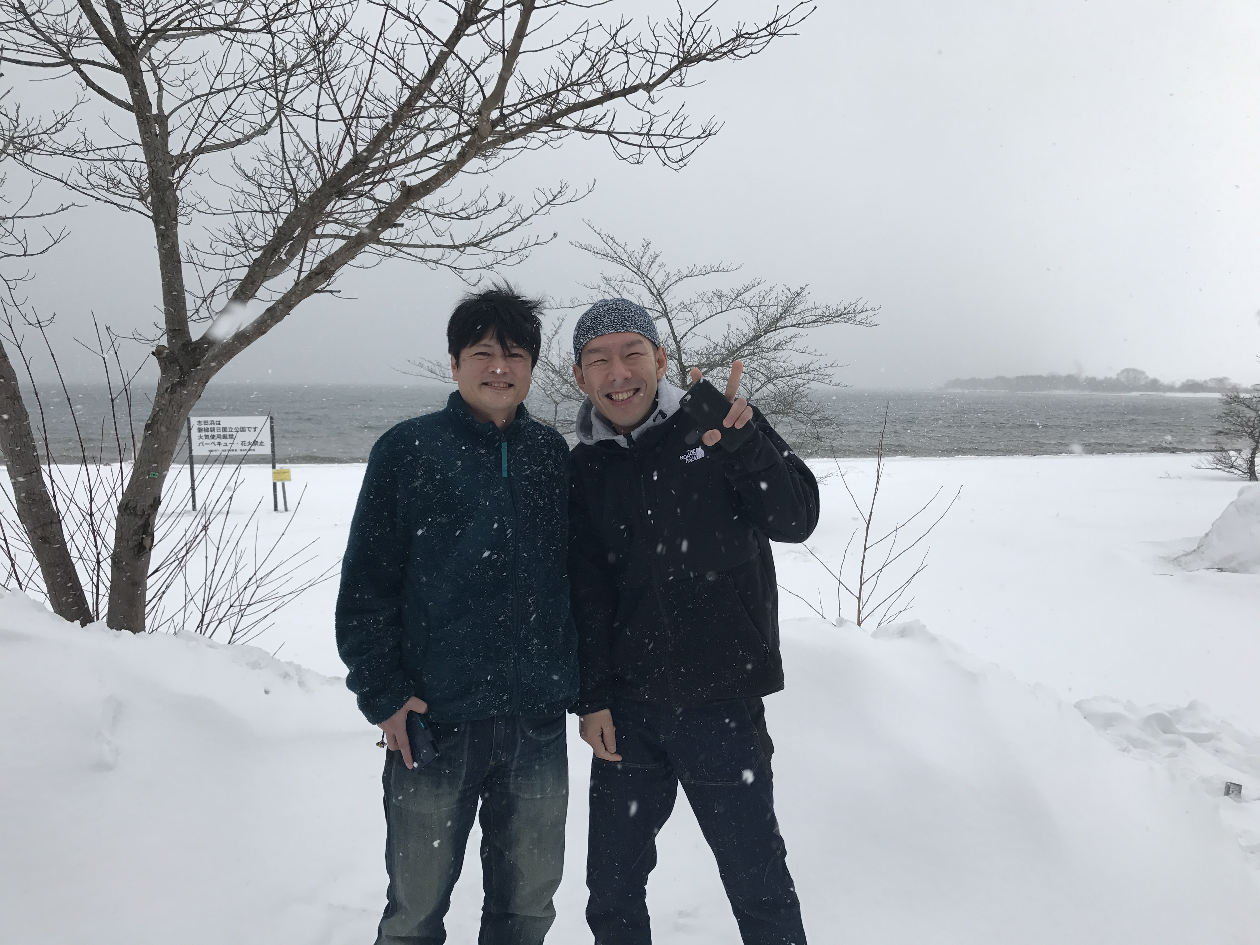 早速猪苗代湖の状態を確認する3人