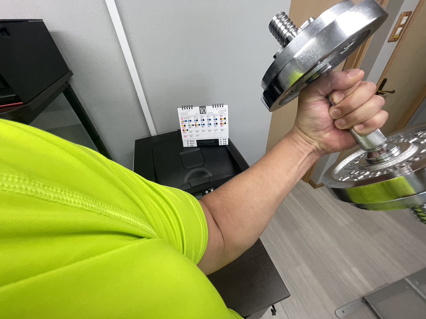 筋トレもその一環で 時間の合間に事務所で 腕立て・ダンベル・腹筋ローラーを各50回 エアロバイクを1時間漕いでおります