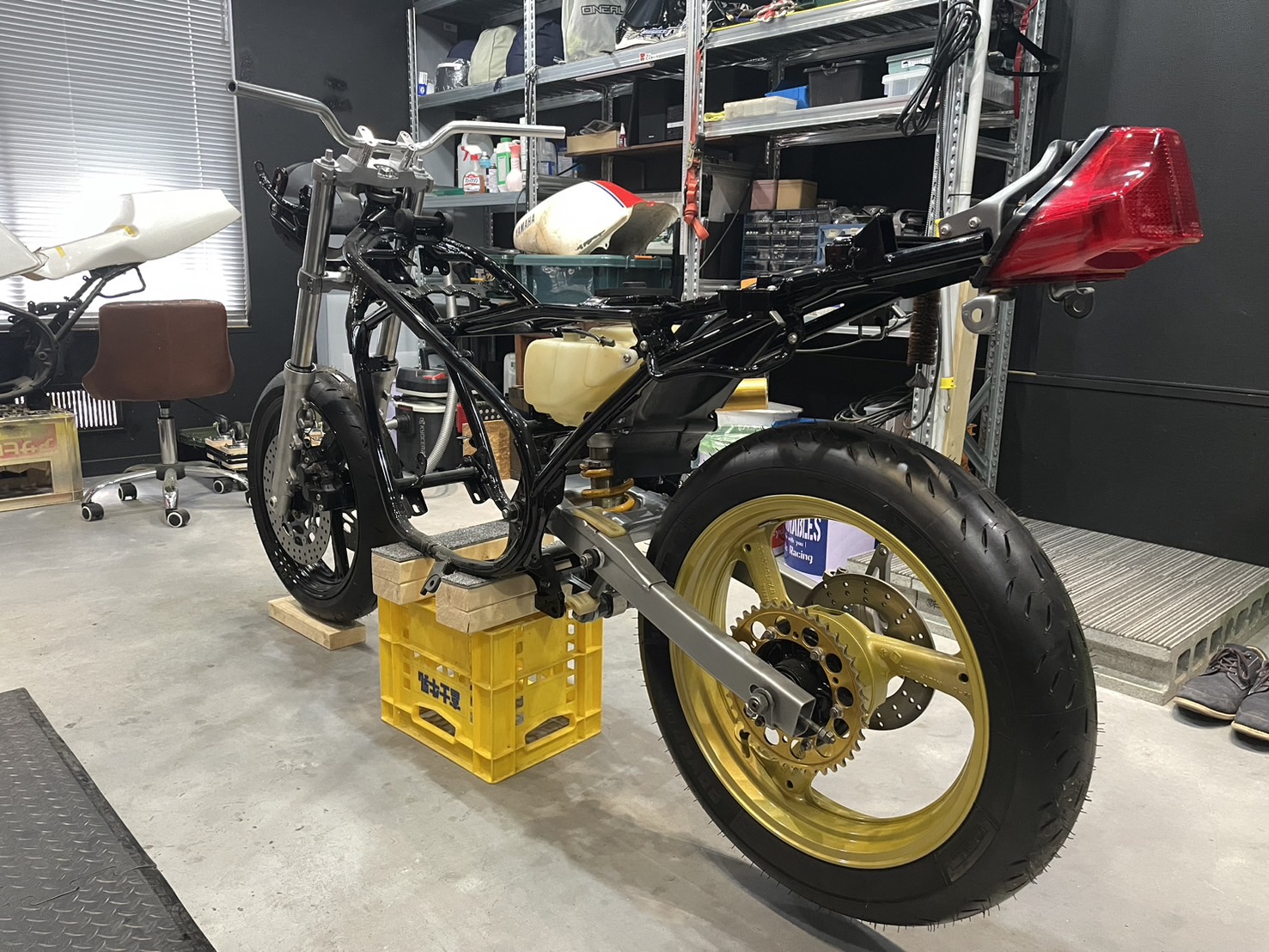 フレームとスイングアームはパウダーコートで再塗装済み