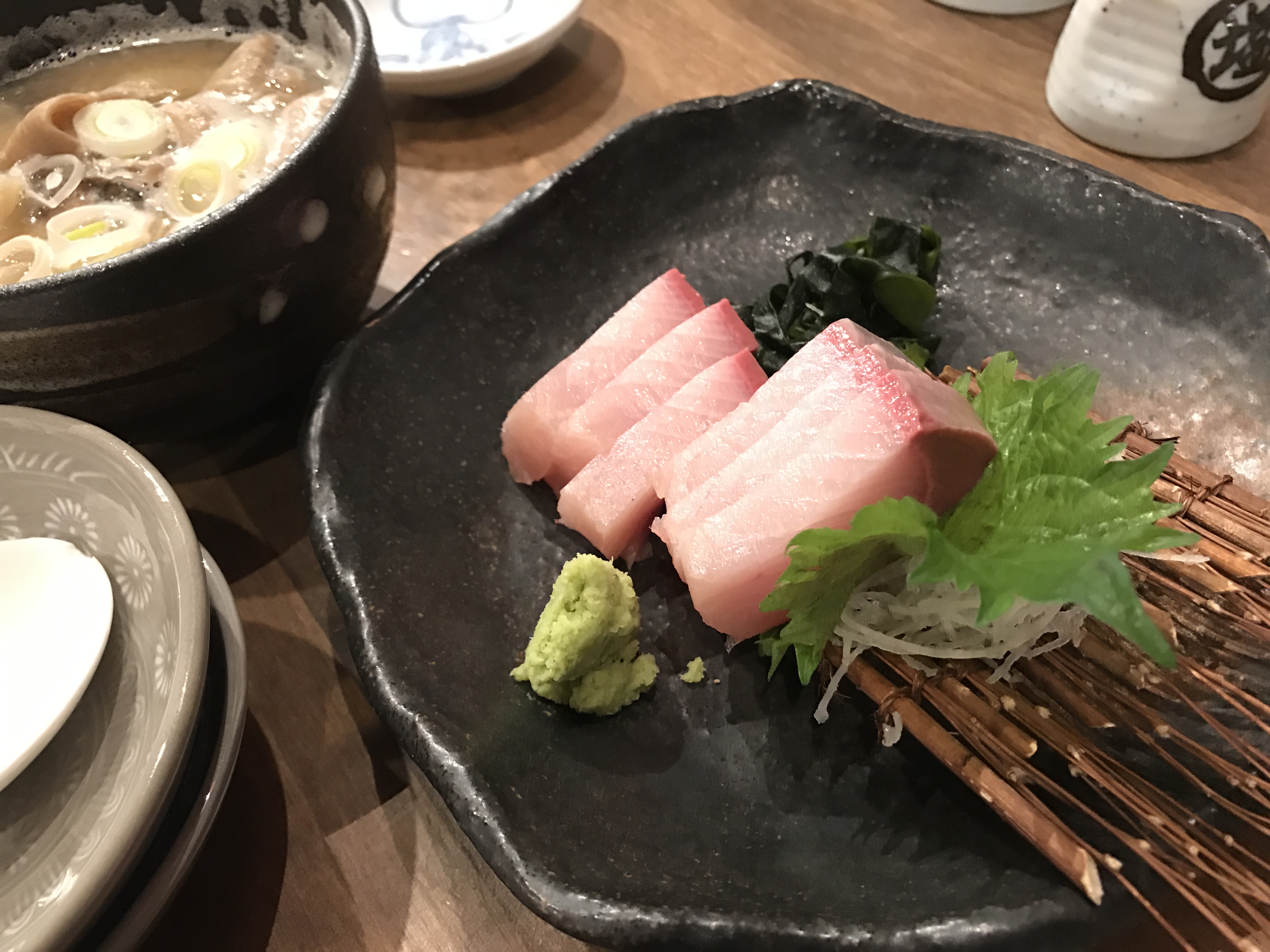ブリ刺しとモツ煮で一杯飲んでいると・・・・
