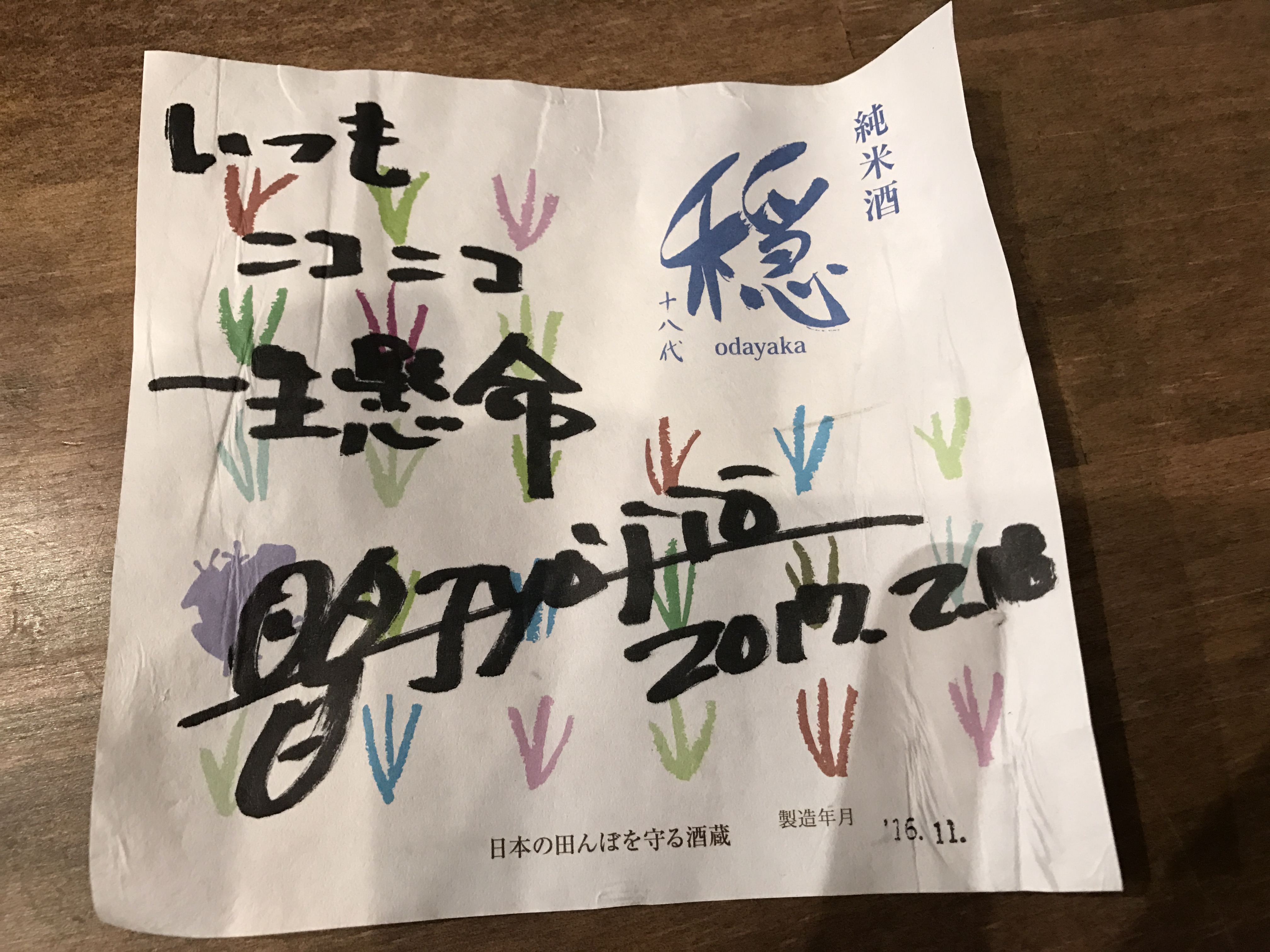 いろんな日本酒のラベルから選んだのは もちろん地元仁井田本家の「穏」