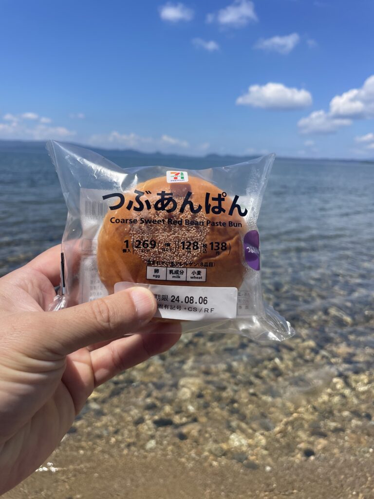 湖畔の涼しい風に吹かれて アンパン食べました😎